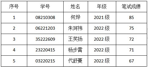 2023年本科生集中考核转专业工作实施细则》,经笔试考核,确定何烨等5名同学进入肉视频