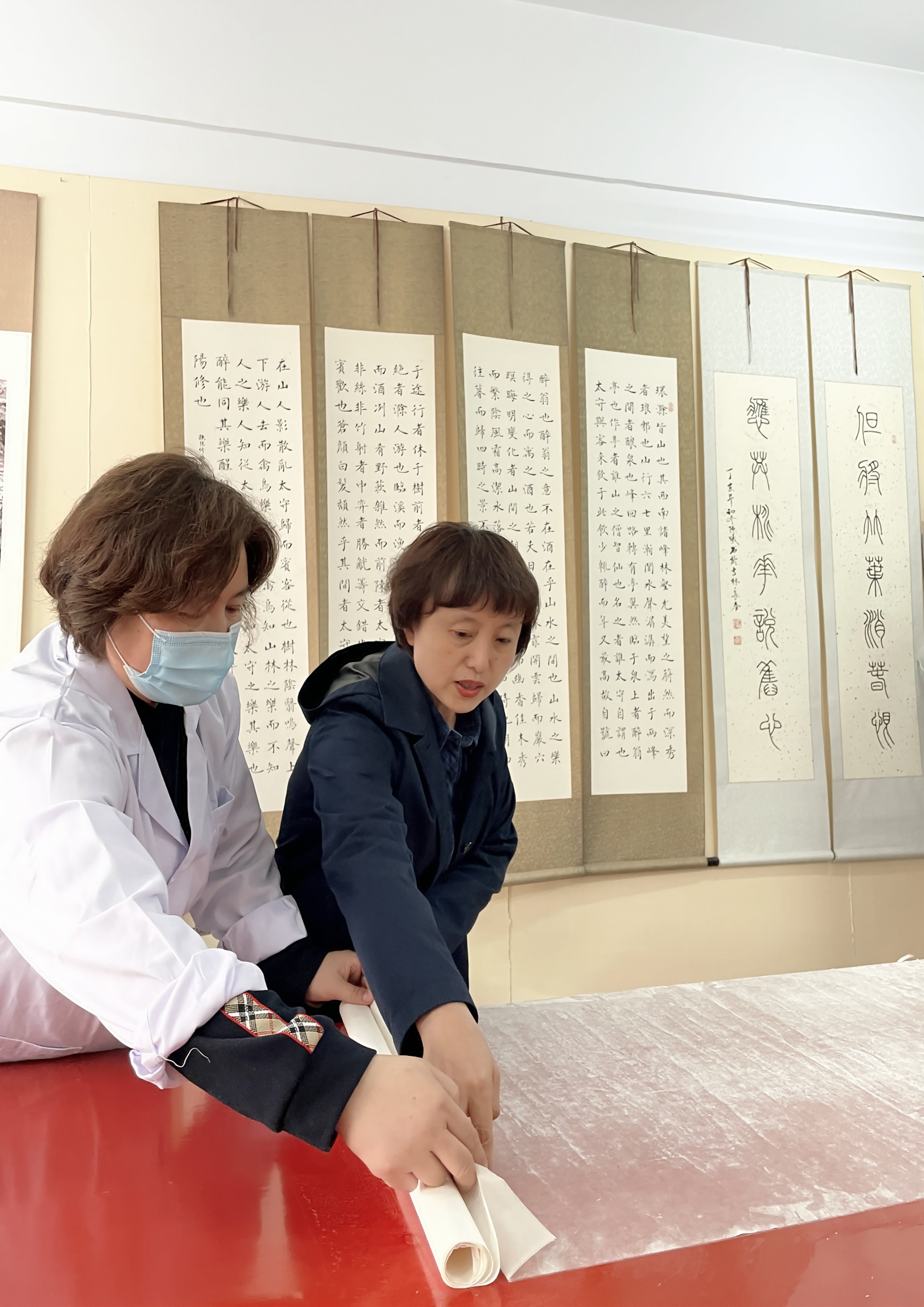 实验室姜晓东老师为行政教辅队伍中的党员和入党申请人做了博物馆藏品书画装裱知识培训。