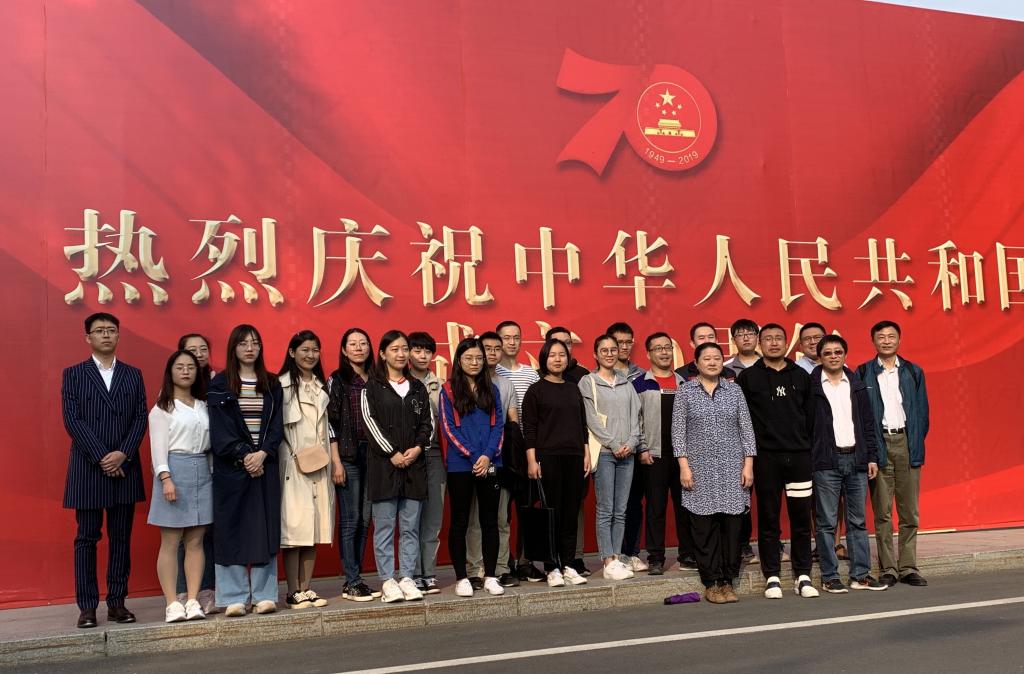 宣誓结束后,党员们纷纷在东校门的“热烈庆祝中华人民共和国成立70周年”宣传板前合影留念。