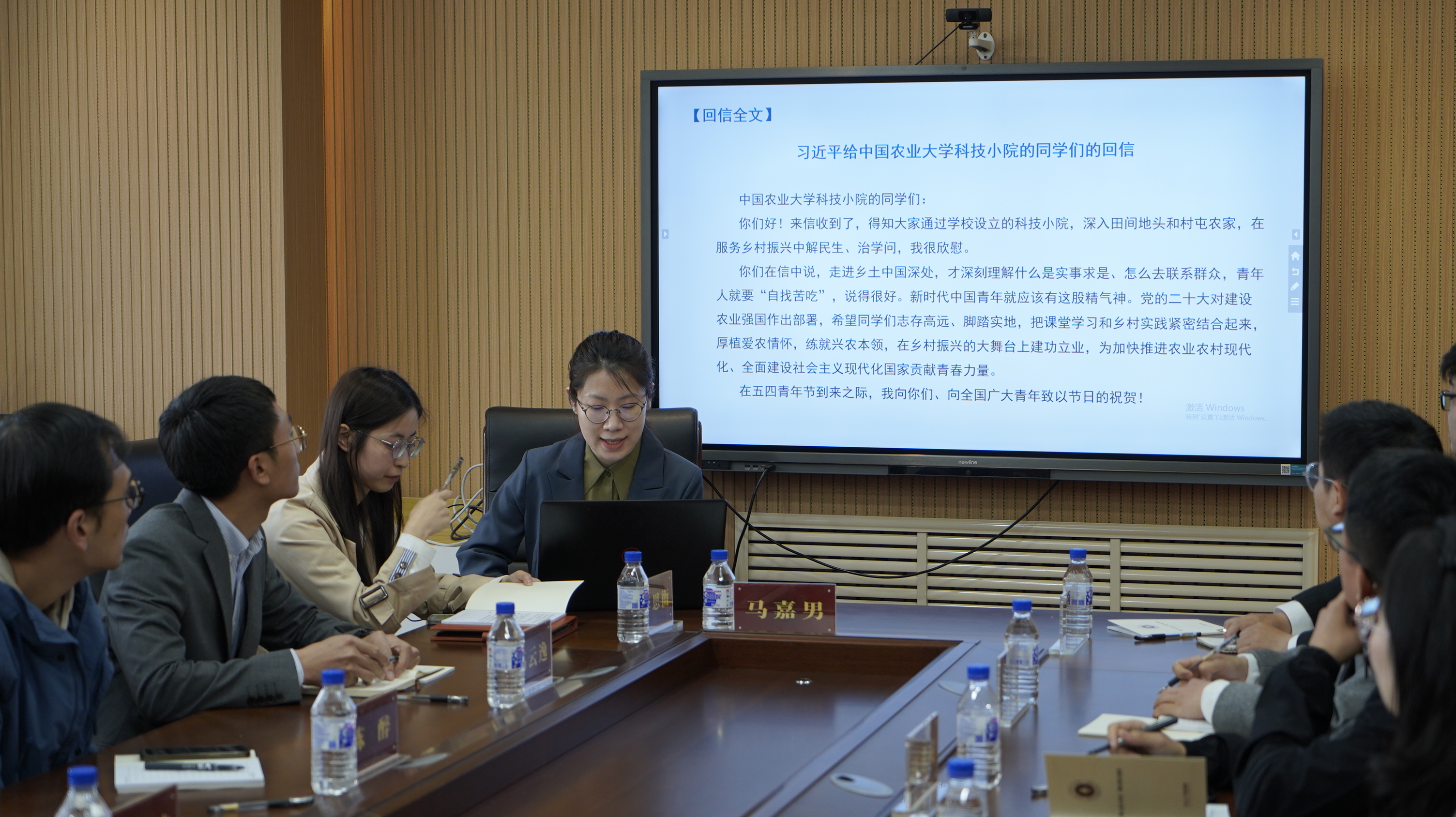 会议伊始,由团委负责人马嘉男传达学习习近平总书记给中国农业大学科技小院学生的回信精神。