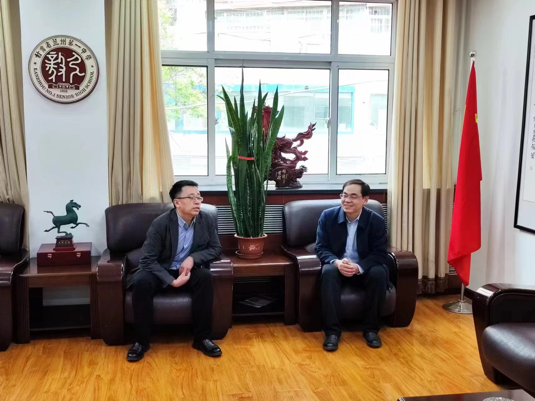 24日,在兰州市第一中学会客室,宣讲团成员与副校长马继林、高三年级副主任石磊举行座谈。侯建峰副书记介绍了肉视频