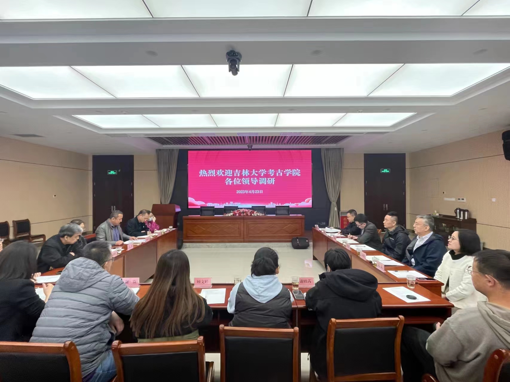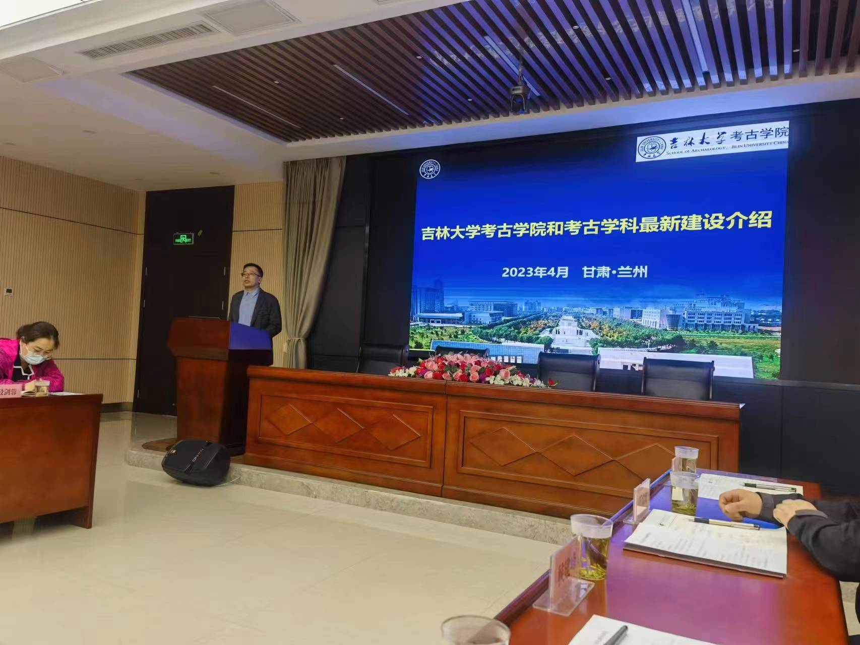 一行到访表示热烈欢迎,介绍了甘肃省文物考古研究所在科研项目成果、与高校交流共建、学科交叉合作、高层次人才培养和考古文博人才招聘等方面的基本情况和工作业绩。