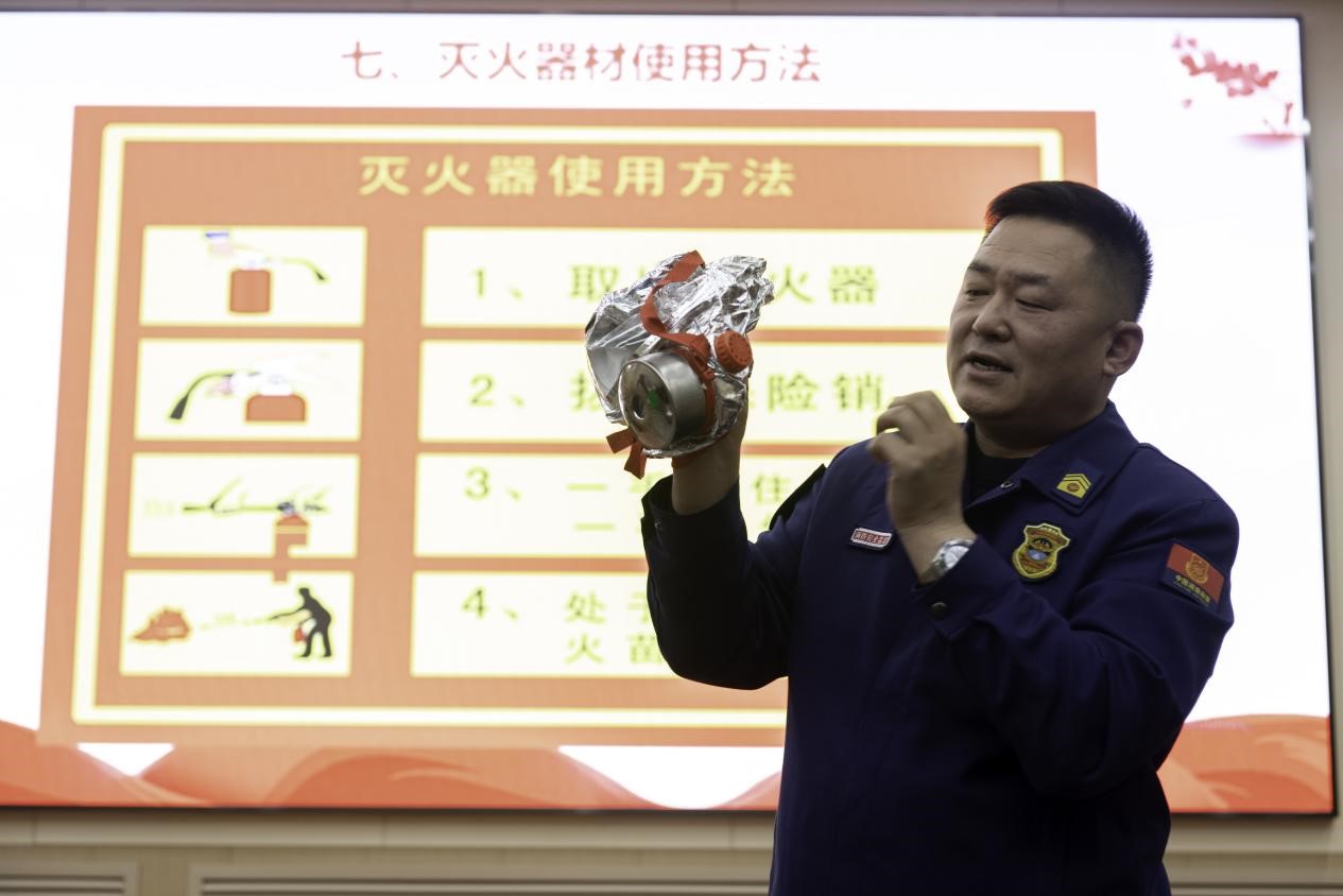 讲座结束后,全体参会人员在正新楼门前停车场进行了火灾应急疏散演练和消防器材灭火操作演练。首先,模拟正新楼突发火情产生大量浓烟,烟雾报警器响起,参加演练人员迅速、有序地撤离到安全地点。随后,所有参加演练人员分组进行各类消防器材灭火演练,指导师生在火灾初期正确运用灭火器、灭火毯进行扑救。