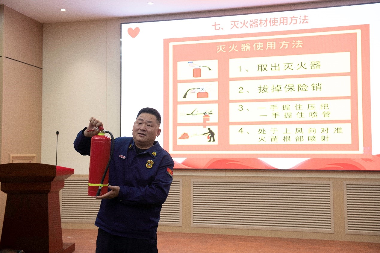 开幕式后,开启了本届实验室安全文化月的第一项活动 ----“消防安全知识讲座及消防逃生演练”,由保卫处消防科副科长董立明主讲。通过一系列事故案例,指出了实验室消防安全的重要性,结合学院实验室工作实际,对实验室消防隐患及风险点做了详细介绍,重点强调了实验室消防安全的注意事项。最后,详细讲解、现场演示了灭火器和消防面罩的使用方法和注意事项。