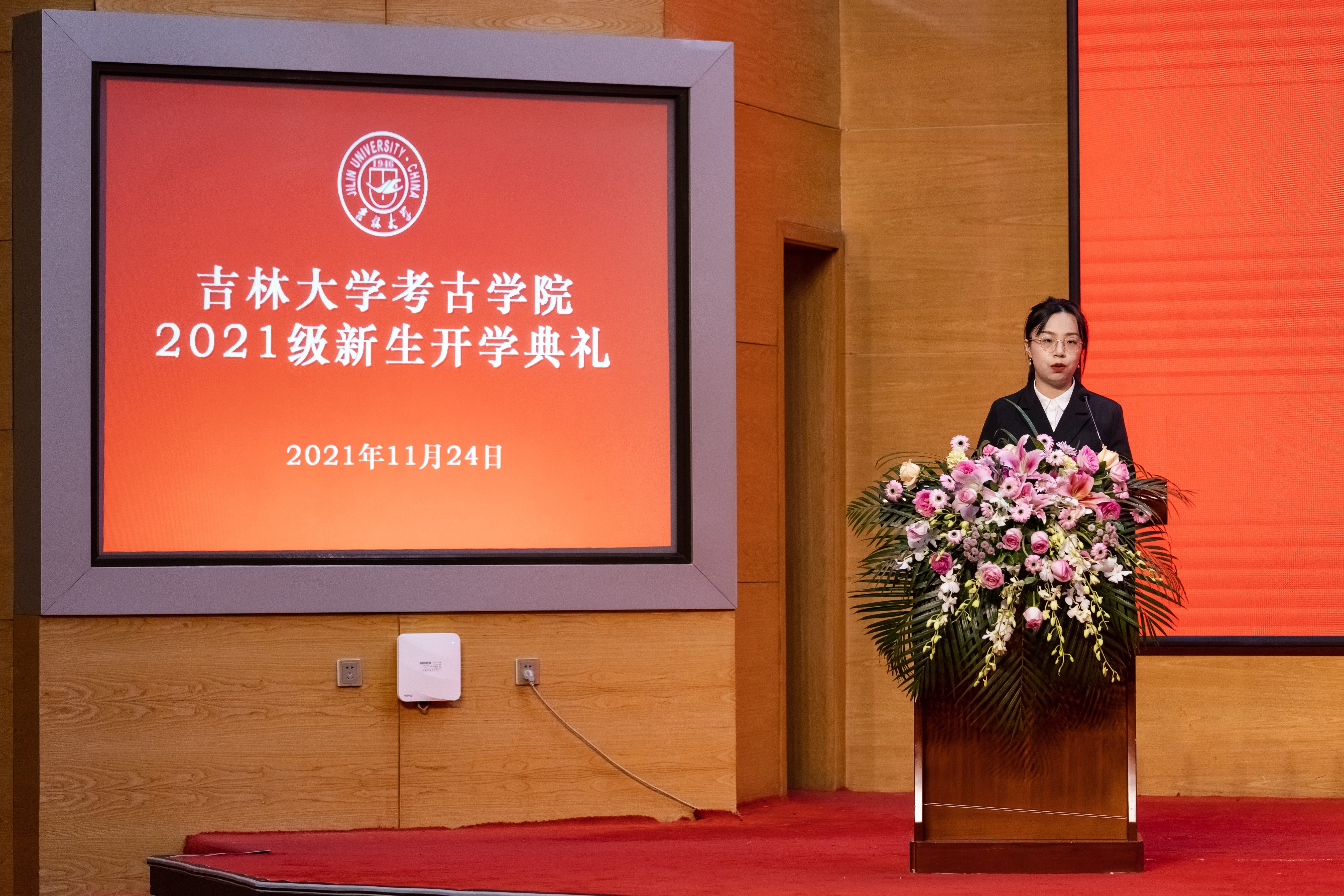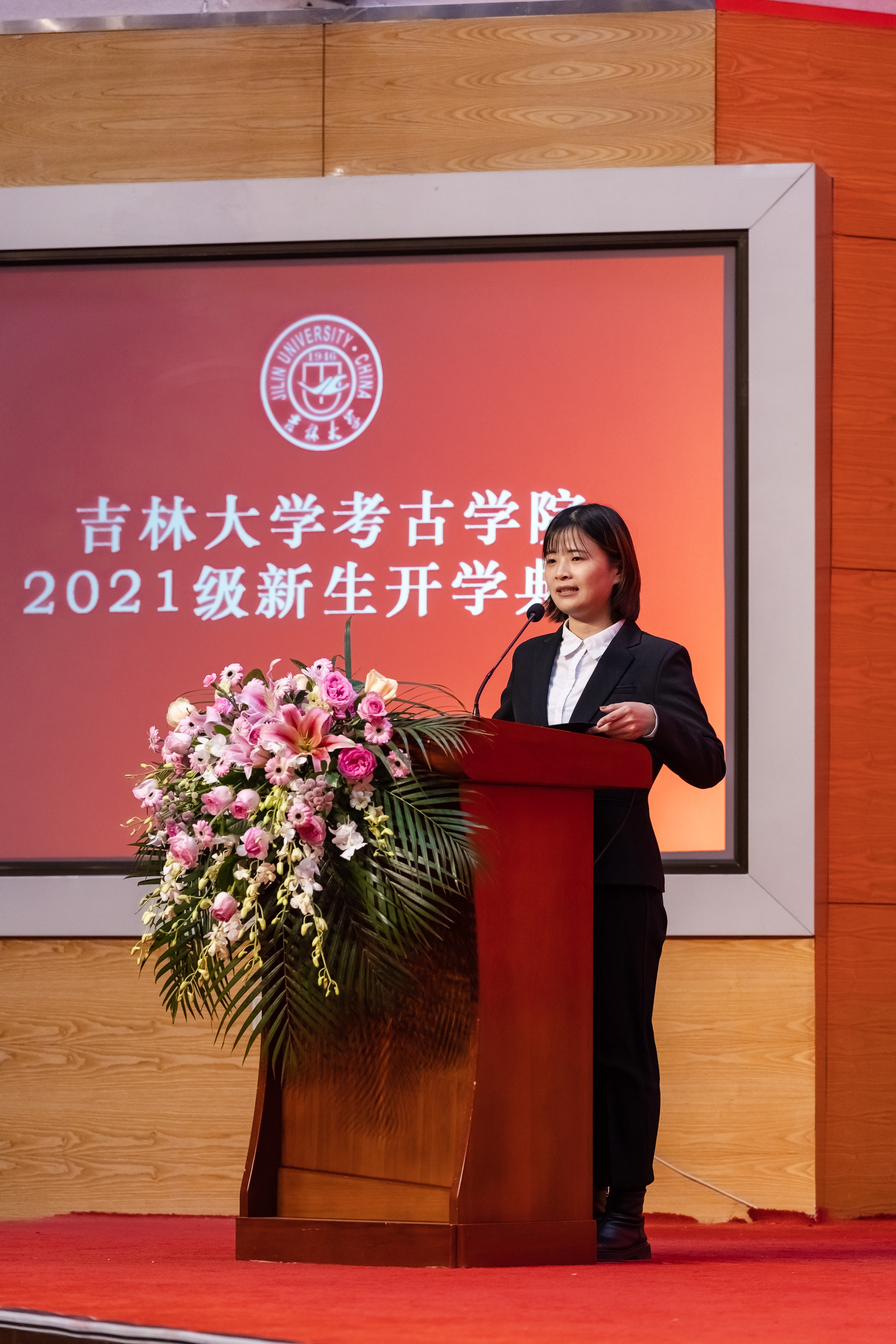 本科新生代表唐诗雨、硕士新生代表连胜男、博士新生代表邓梅格共同表达了对今后求学生涯的美好憧憬和对考古专业的无限热爱,呼吁同学们要学会思考、学会实践,努力把自己塑造成一名德才兼备的吉大考古人。