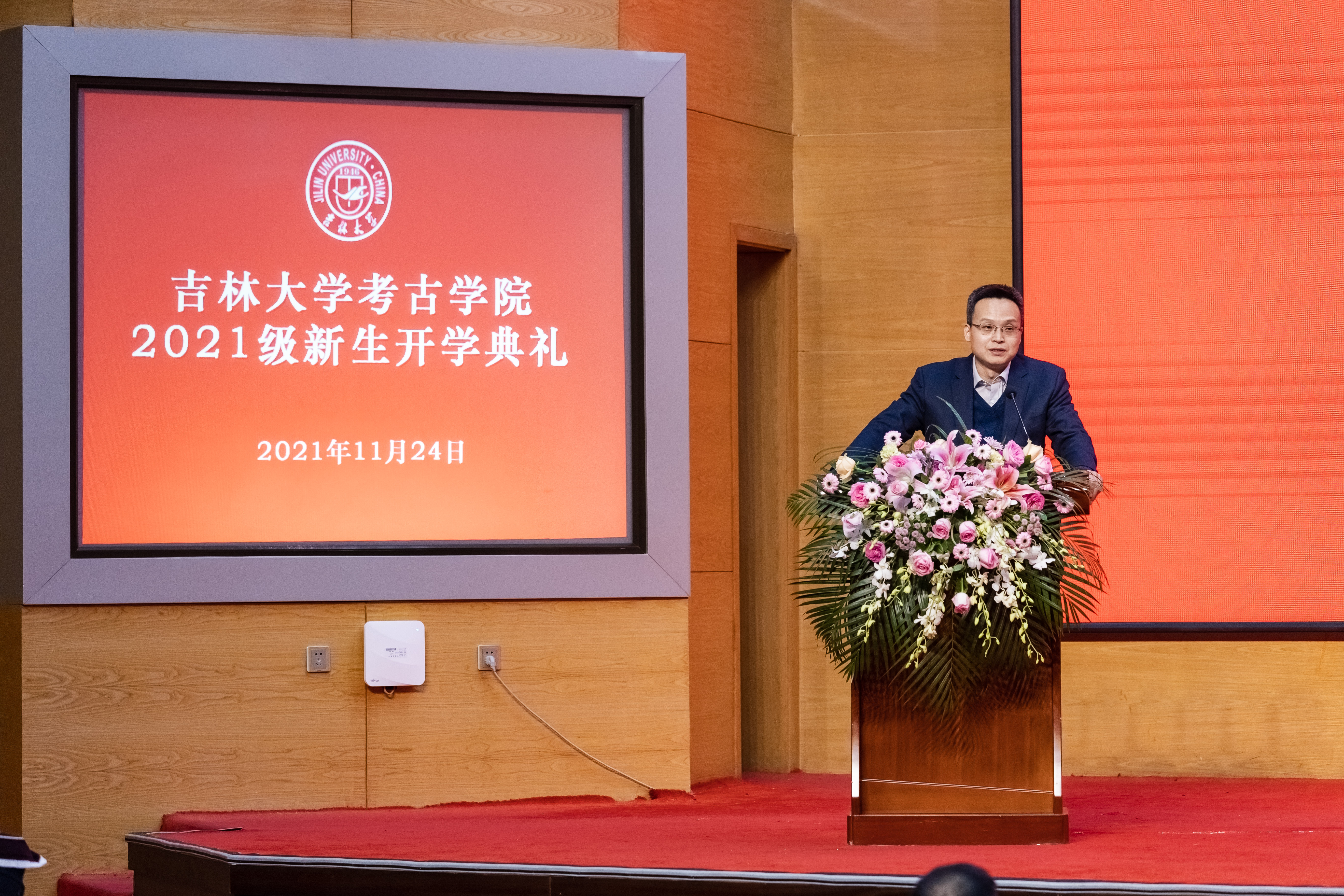 院长赵宾福教授为新生致辞。赵宾福教授指出,2021年是中国共产党成立一百周年,也是中国现代考古学诞生一百周年,同学们要认真领悟党的百年奋斗征程,感悟考古百年发展历程,珍惜中国考古学新的时代机遇,利用好吉大考古学优质的学科平台,努力学习专业知识,做到无愧时代。最后,赵院长向同学们表达了三点期望,希望同学们掌握为学之道、坚守为人之道、笃行修齐治平之道,认真思考个人成长成才的道路和责任与担当,努力做到踏实研究、奋发向上,在与新时代同向同行的奋进征程中,绽放出绚丽的青春光彩。