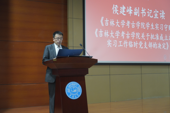 大会第一项为实习带队教师讲话。田野考古实习带队教师林森老师对考古实习基地进行了介绍,并对即将开始的实习工作提出期望与要求,与同学们一起共勉。博物馆实习带队教师李亚利老师对文博实习计划与安排进行阐述,对实习要求和注意事项进行提示,预祝同学们实习工作学有所得。