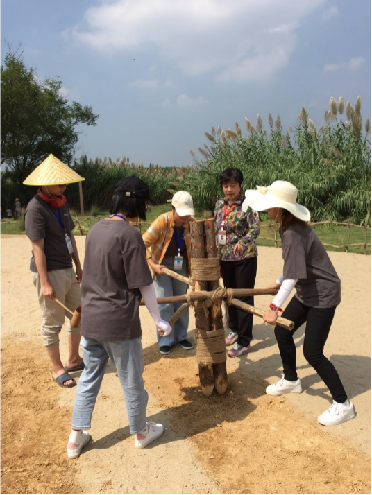 耿默兰同学在良渚遗址和同学们进行实验考古项目培训