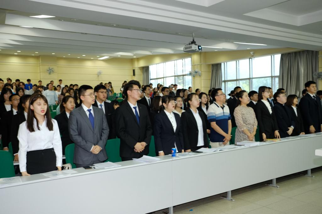 于逸夫教学楼第三阶梯教室举行了第一届学生代表大会暨团员代表大会。学院党委副书记兼副院长侯建峰,学生工作办公室主任杨晨及2016级、2017级、2018级共160位本科学生代表参会。大会由学院学生会秘书长王思熠主持。