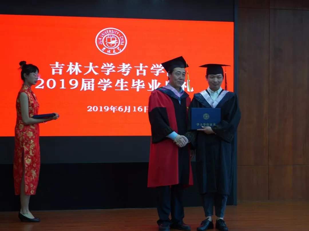 学位委员会历史学分委会委员王立新教授,共同为全体毕业生颁发学位证书、行拨穗礼。全体毕业生秩序井然,依次上台接受拨穗礼,并与两位教授深情握手,合影留念。