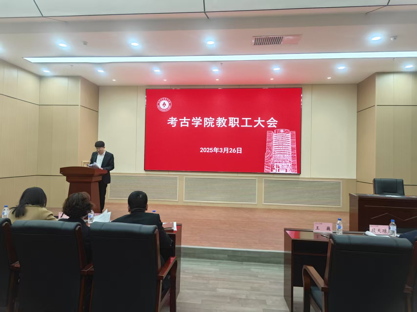 院长兼考古与艺术博物馆馆长段天璟做主题工作报告。学院领导班子成员分别就分管工作进行了汇报和布置。会议由学院党委书记王巍主持。