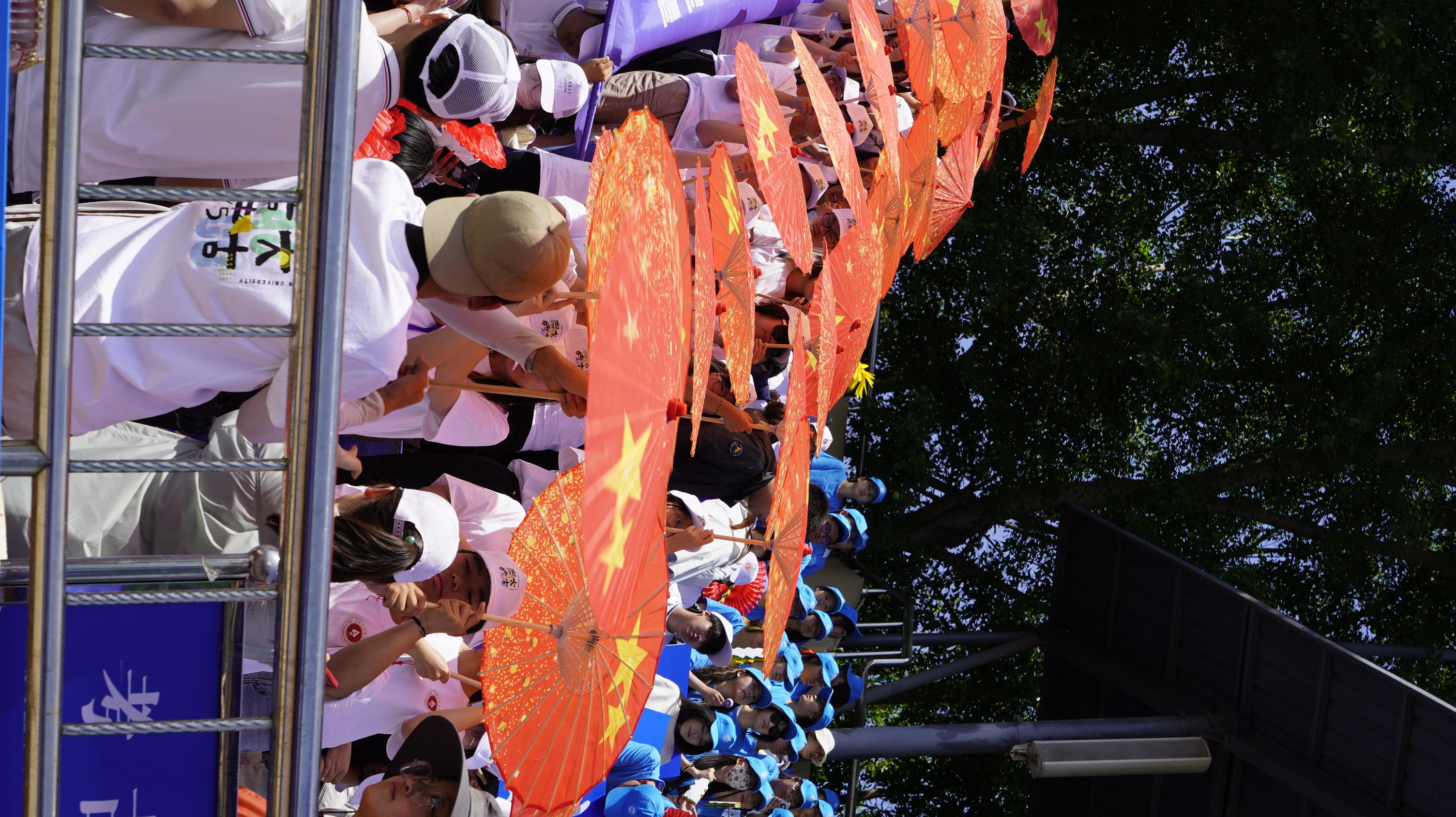 独特logo的文化衫,手握鲜艳如火的红油纸伞,随着鼓点的节奏,在微风中轻盈地撑起、优雅地旋转、摇曳生姿、利落收束,展现出磅礴大气、威武不凡的风采。每一个动作都如行云流水般自然流畅,每一句口号都如穿云裂石般铿锵有力、激荡人心,尽显考古学子们默契协作的团队精神与磐石般的凝聚力。