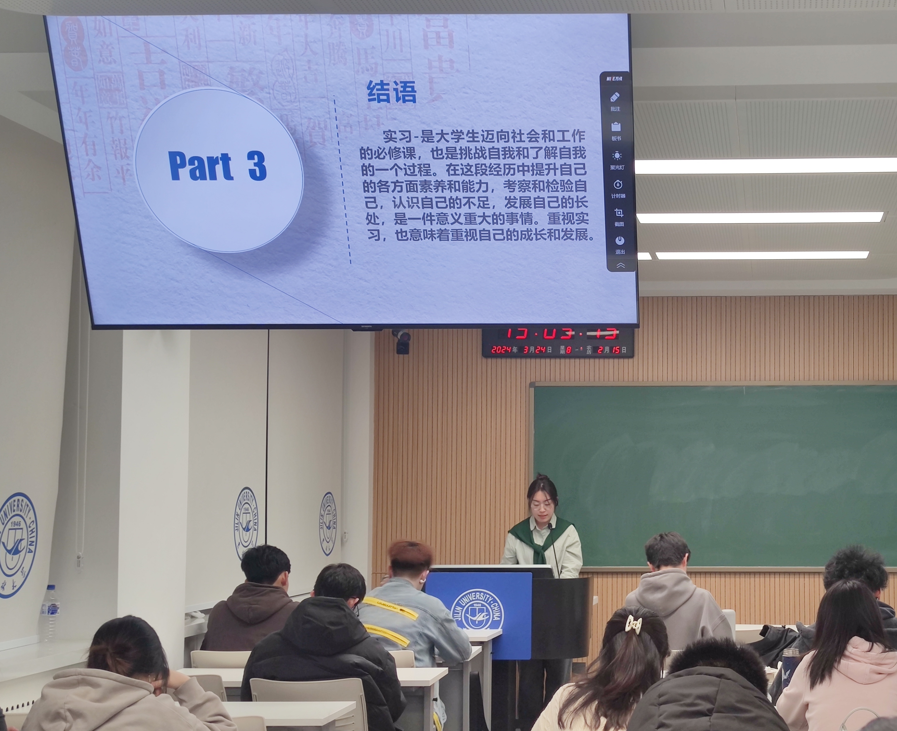 薪火相传,生生不息。在本场分享会中,同学们倾囊相授,向大家事无巨细地介绍了实习生活的方方面面,帮助大家打破信息壁垒,全面了解实习生活。同学们认真倾听,在心中燃起了对实习生活的向往,加深了对专业的热爱。相信本场专业实习分享会能够帮助同学们消除心中的忐忑与疑惑,满怀期待和憧憬,在接下来的日子里“追风赶月莫停留,平芜尽处是春山”,遇见更好的自己!