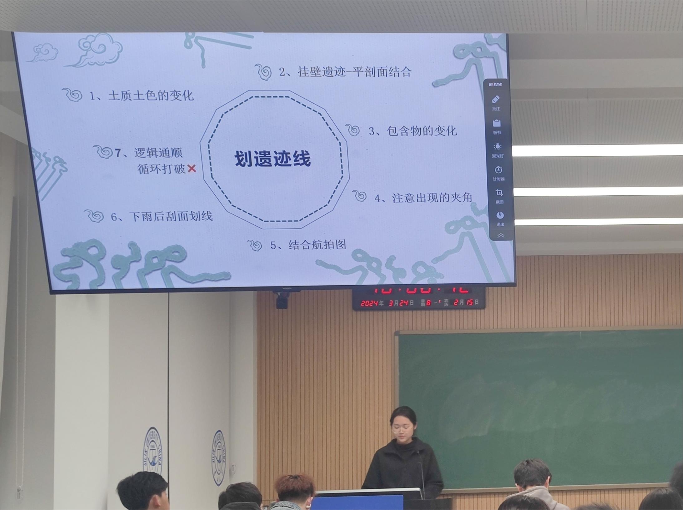 李玉婷分别从学习、工作、生活三个方面向同学们分享了实习生活中的经验,着重介绍了实习过程中野外发掘、资料整理的相关流程以及划遗迹线的方法与注意事项。干货满满的分享让大家对田野考古工作有了更深入的了解。