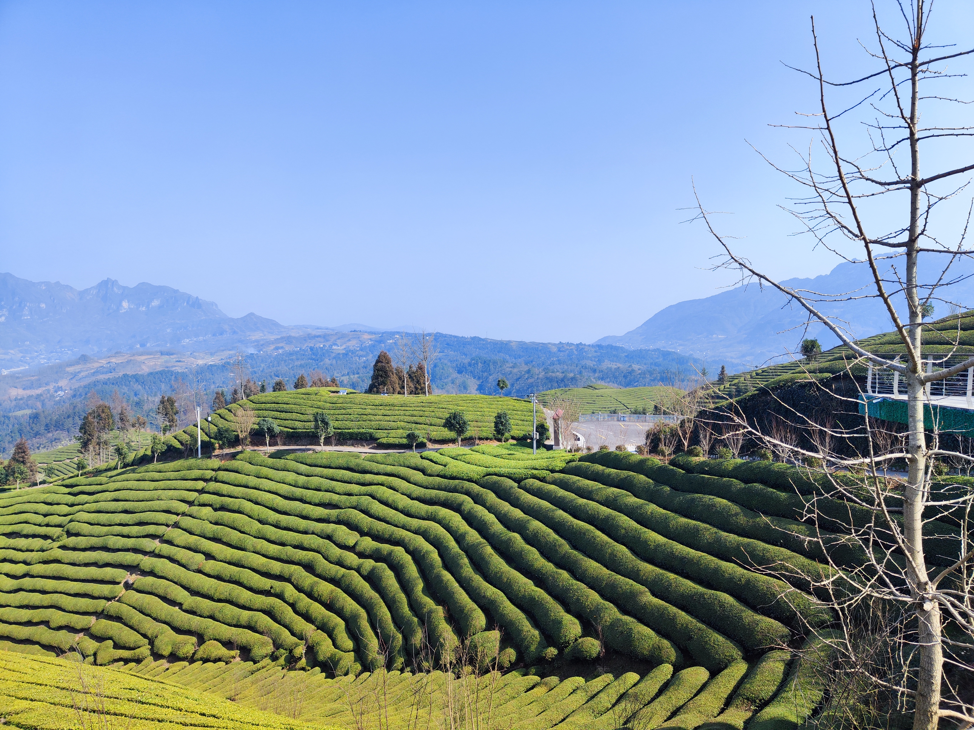 走马镇位于大山之中,几乎没有平原以供耕作,于是茶产业成为当地的支柱性产业。大部分茶树生长在陡直的山坡上,它们是如此旺盛顽强。徐莞懿同学看着不断延伸的苍翠茶园与湛蓝天空相互映衬,深知这茶园是村民们劳动的结晶。走马镇的居民们就如这茶树一般坚挺,在贫瘠的崇山峻岭里扎稳了脚跟,实现了自然资源保护和合理利用的平衡,乡村振兴离不开人民群众的辛勤劳作。