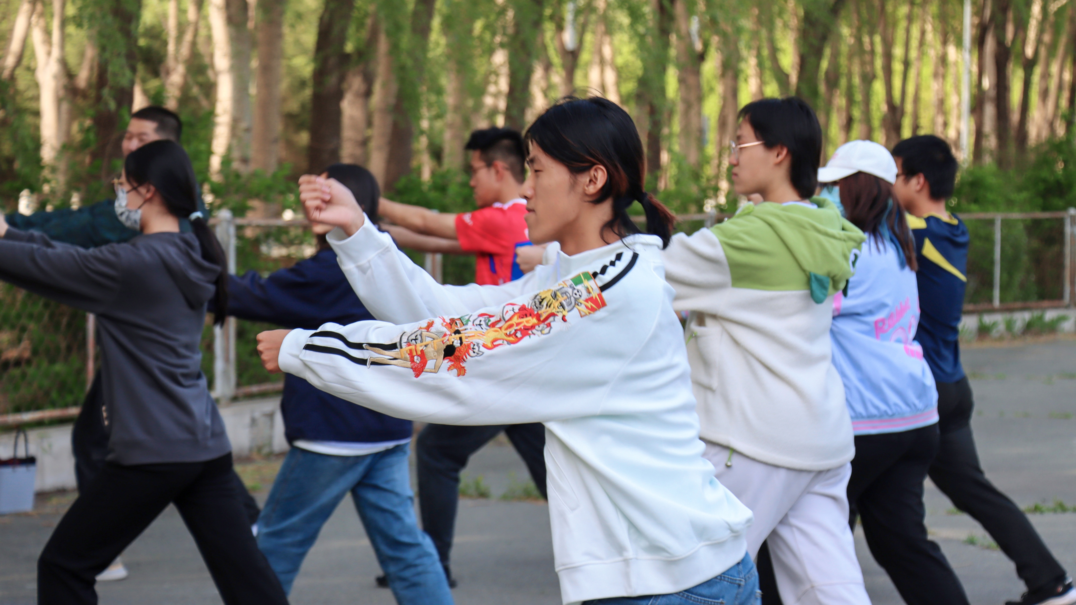 自4月23日起展开八极拳集体训练。集训由校园文化部张航同学组织,王俊超、张延朋同学担任领队,2022级共计30名同学参加训练。