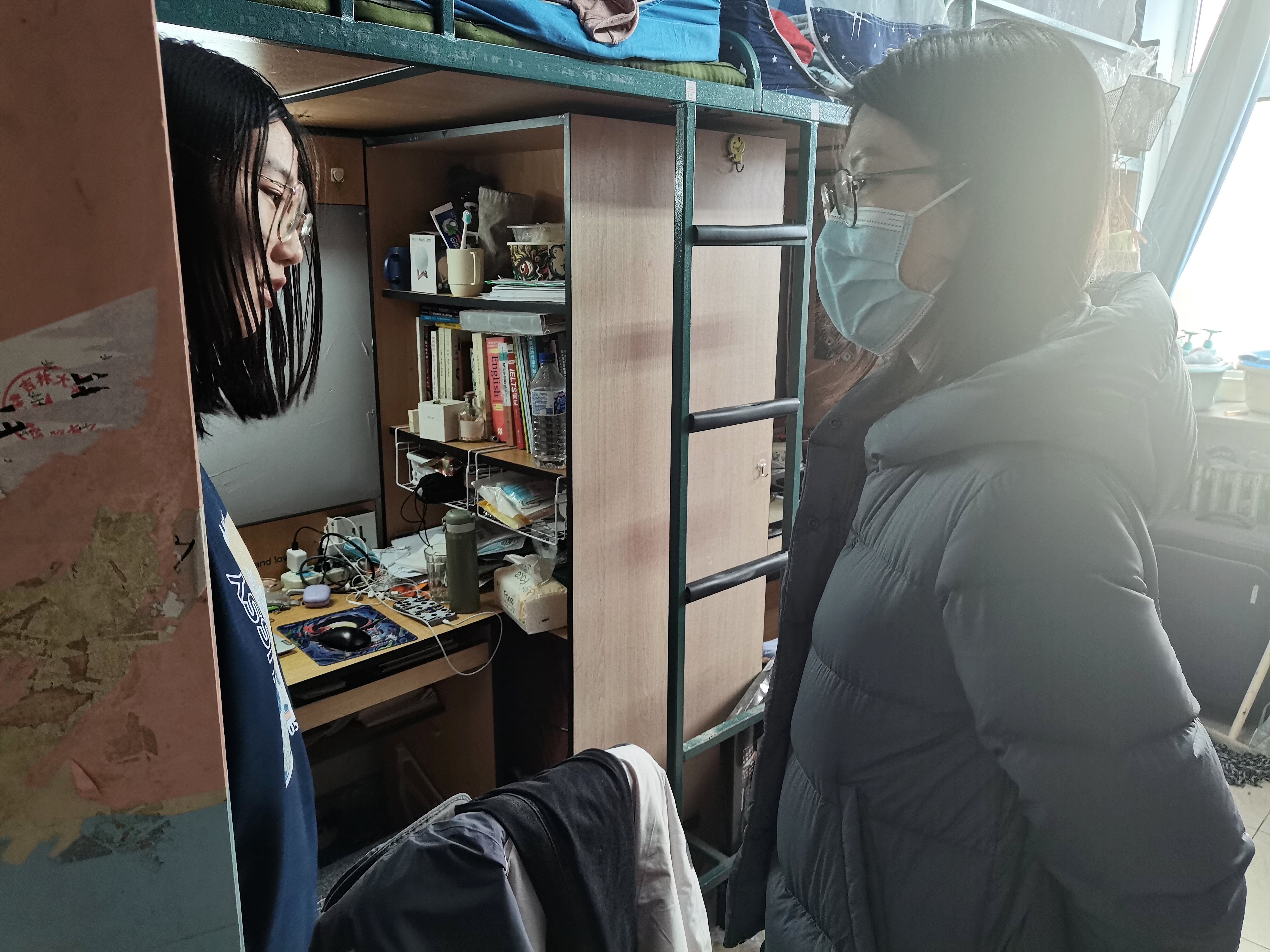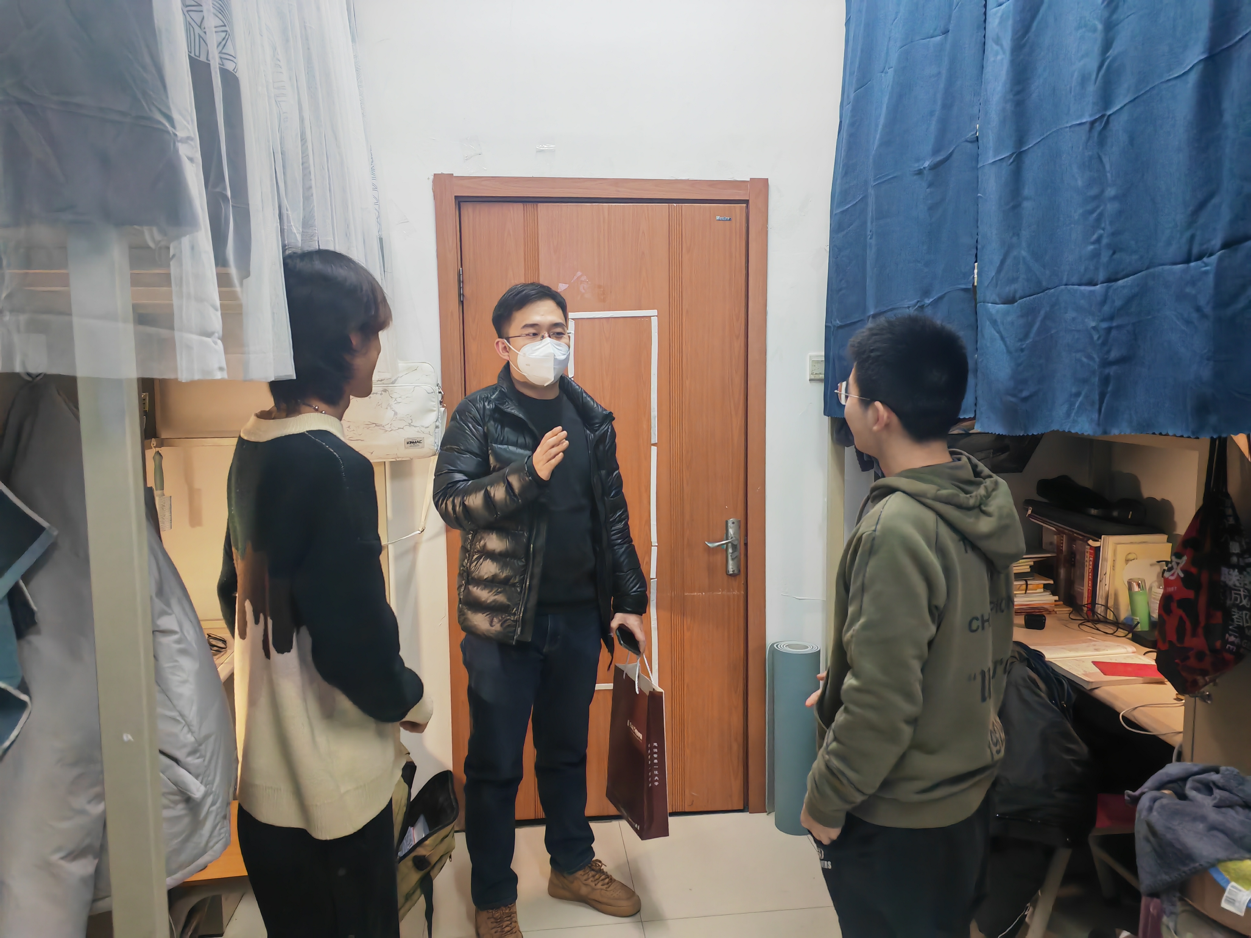 学生工作办公室主任杨晨、辅导员马嘉男、邱泽涵来到学生宿舍,探望全体本科同学。