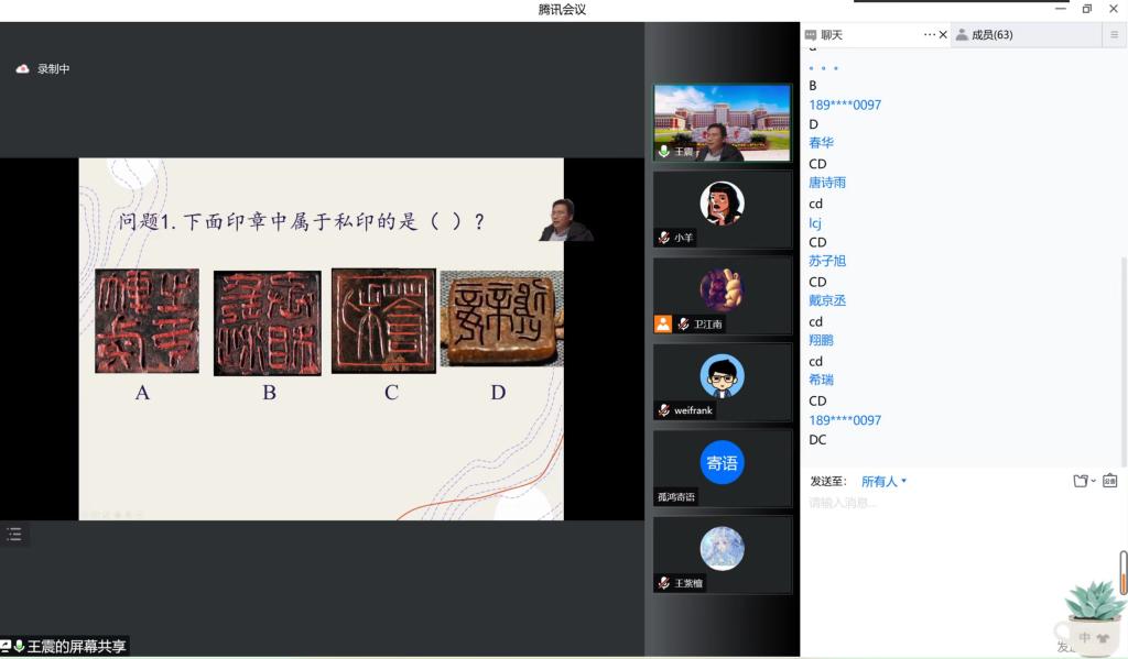 在活动最后,王震老师也为考古学子送上寄语:有很多问题可能永远也没有答案,但却不妨碍我们得到更多的启发。我们要谨记考古学的目标:阐释历史重大问题,透物见人,以物论史。同时,王震老师还给同学们送上美好祝福,希望大家在线上学习的过程中也能保持心情舒畅,期待早日解封。