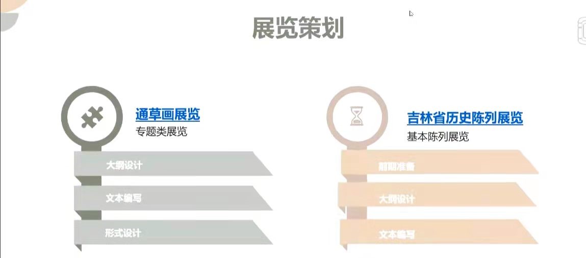 随后,来自19级的四位同学作了经验分享。郝雨卓同学就博物馆实习工作中的新媒体宣传工作和社教活动与实习感悟进行分享。梁开来同学从策展角度出发,以自己参与的通草画展览和吉林省历史陈列展的经历为主线传授经验,并为同学们带来了充实愉快的实习趣事。张灵江同学从藏品入库和策展角度为大家带来了如何从零开始完成工作的宝贵经验。焦越涵同学阐述了观众调查、展厅服务和文创设计三个方面的经验,并向同学们提出了建议。