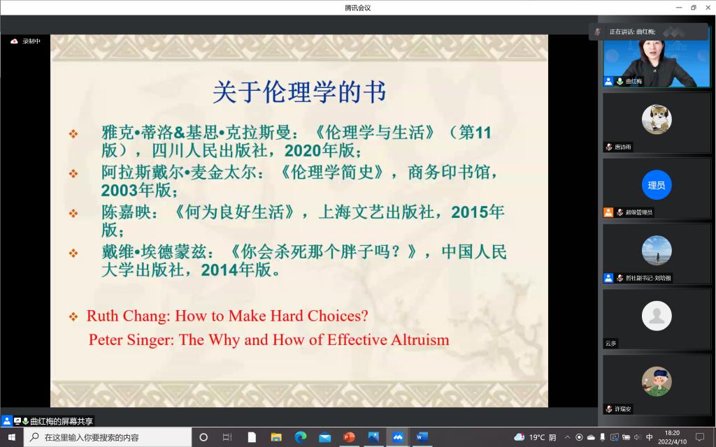 对于“如何建构我们的好生活?”,曲教授进行了着重说明。她明确指出,幸福就是过好生活,当一个人意识到什么是好生活并自我追求而且是有尊严地追求好生活之时,他就是在好好生活:尊重自己和他人生活的重要性,尊重自己和他人的伦理责任,“关心自己,也关心粮食蔬菜”。