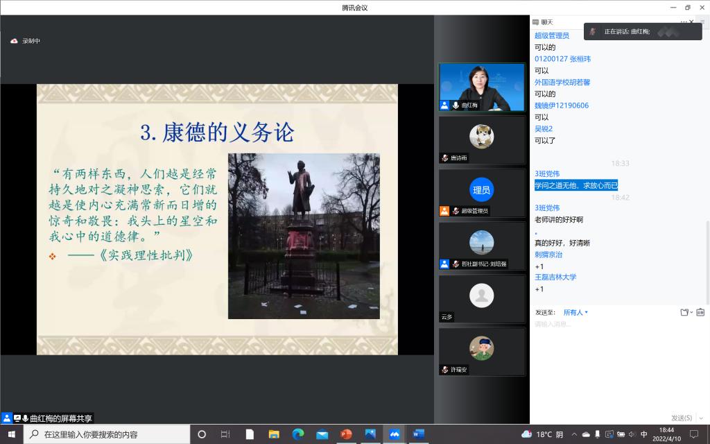 本科生党支部积极响应学校号召,组织入党积极分子同学于4月10日晚在宿舍聆听了“思想·理论·人生:100讲”疫情防控名师线上大讲堂系列巡讲第三十二讲。本次讲座请到了肉视频