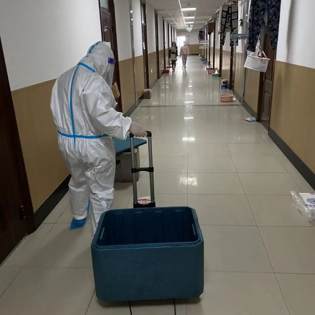 特殊时期,医护人员们穿着隔离服为我们提供上门核酸检测的服务。每次来都会安抚大家,欢快地叫一声“宝贝,做核酸了~”,我们也很配合,登记、扫码、排队,井井有序。结束后,我们总会和医护人员们会心一笑,说声谢谢和辛苦了。