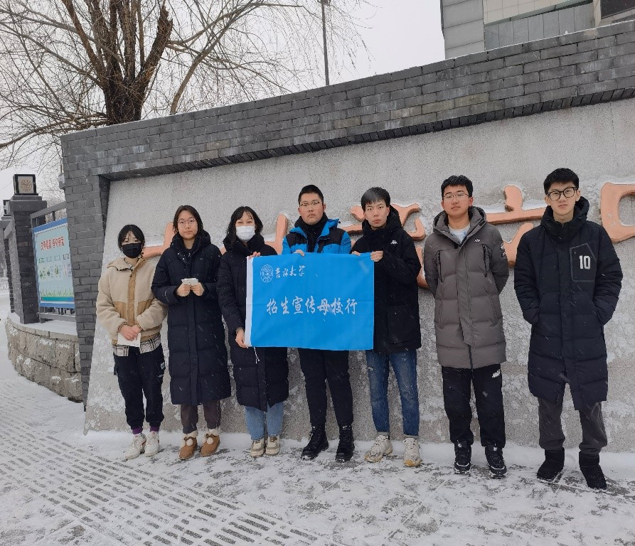 寒假期间,两位同学参加了“千人千团进校园,招生宣传拓影响”专项实践活动,与其他学院同学一起组成“吉林毓文中学返校宣讲小队”。宣讲会召开之前,团队成员在线上召开了多次讨论会,大家在群里交流意见,互相帮助,做好了任务分配等各项准备工作。考虑到疫情防控的需要,团队决定采用钉钉直播的方式进行宣讲。