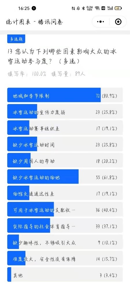 本次实践的主要课题是调研我国不同地区群众对冰雪运动与文化的了解及各地方的宣传建设程度。团队采用了线下街头采访与线上问卷调研相结合的方式,由成员在各自的家乡进行了随机采访,并在社交媒体上发放电子问卷,面向100名大众进行问卷调研,来了解全国多地的冰雪运动推广情况,并根据调研结果提出可行的建议,更好地帮助传播冰雪文化、发展冰雪产业经济。