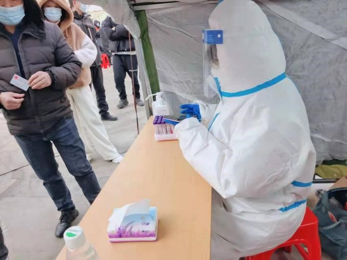 在社区组织“三筛”时,检测点增加了两个通道。吴芊妤在前来支援的教师志愿者的指导下,承担起了采样信息录入的工作。虽然相较之前的工作轻松了许多,但帐篷里的刺骨寒风还是令大家瑟瑟发抖,也让大家感受到了疫情的冷酷。