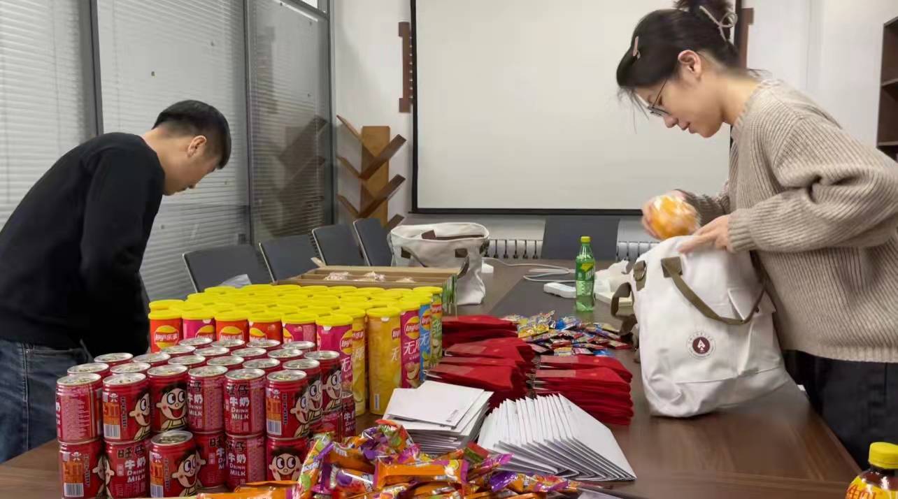 22日下午,辅导员马嘉男老师、博士兼职辅导员靳涛老师和团委副书记温景超同学在学院党团活动室为考研学子准备“考研祝福加油包”。一排排考古文创包里装满了为考研学子精心准备的礼品和祝福:薯片与棒棒糖寓意“薯”你最“棒”,旺仔牛奶寓意学业兴“旺”,橙子寓意心想事“橙”,红袜子寓意鸿运相伴,暖宝贴给大家在寒冷的冬季送去温暖。祝福信由马老师书写,在传递考研祝福的同时,也寄予了对考研学子的厚望重托……为了不影响考研学生备考,马老师与几位同学将准备好的礼品包送到了每一位考研学子的寝室,让学院的关怀与鼓励如同冬日的暖阳,温暖着考研学子的心。收到“考研祝福加油包”的同学表示十分开心,感受到了学院的温情祝福,并表示将带着这份祝福奔赴考场。