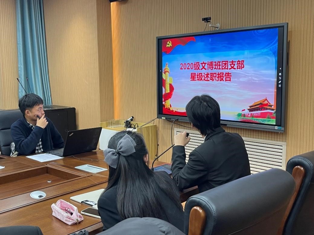 在评审会议召开之前,学院团委指导各班级团支部开展了自评讨论工作,让各团支部梳理总结了自身的工作成绩与不足。会议当天,团委实践部负责人王昱林主持开展了审议会。按年级顺序,分别由18级考古班团支书刘锡甜、18级文博班团支书耿默兰、19级考古班团支书温景超、19级文博班团支书徐逸凡、20级考古班团支书卫江南、20级文博班团支书李凡,依次就2021年组织建设和工作情况进行了述职,重点围绕团员构成、志愿服务、思想活动、实践活动、团支部自身建设等方面进行了阐述,系统展示了本年度各团支部的建设和发展情况。