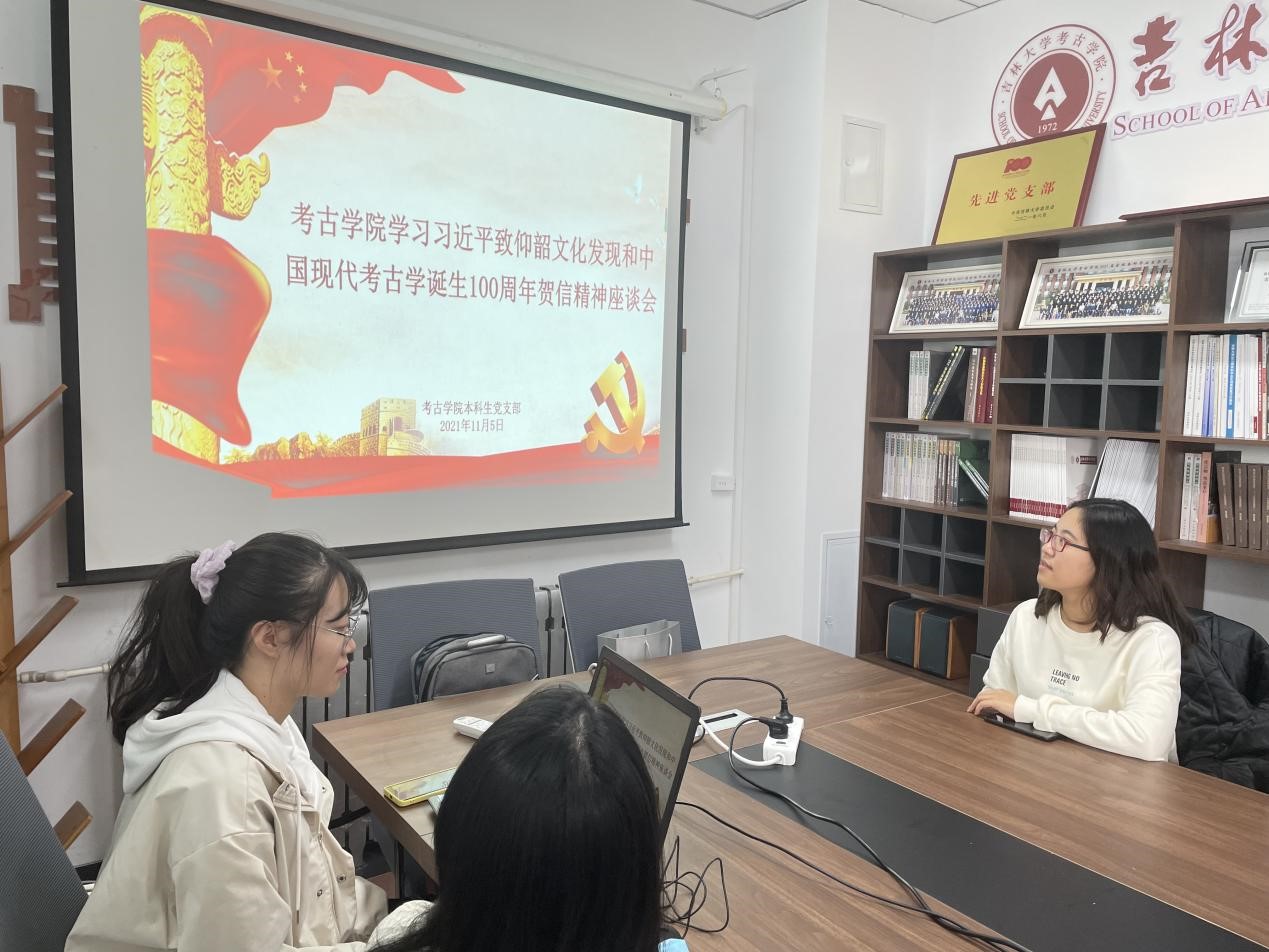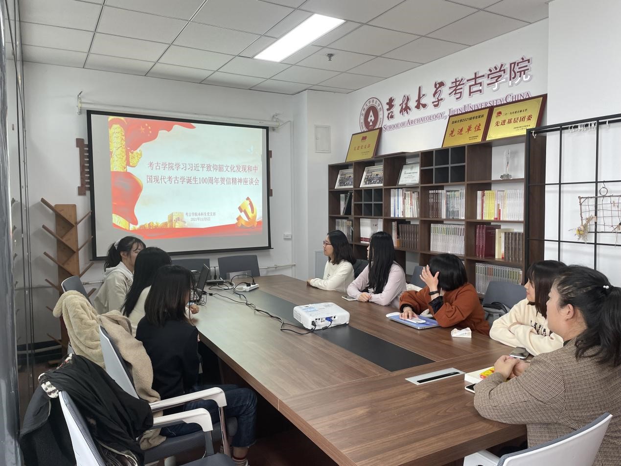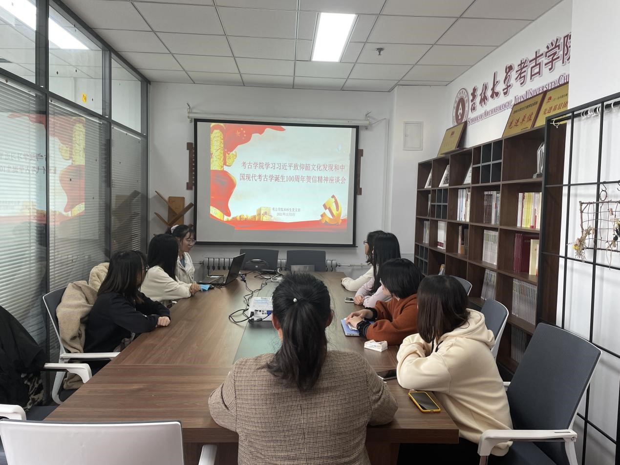 本科生党支部在学院党团活动室召开了学习习近平总书记致仰韶文化发现和中国现代考古学诞生100周年贺信精神座谈会。座谈会上,与会师生深入学习交流习近平总书记致仰韶文化发现和中国现代考古学诞生100周年贺信精神,共同探讨了新时代考古学子的使命和责任。会议由肉视频