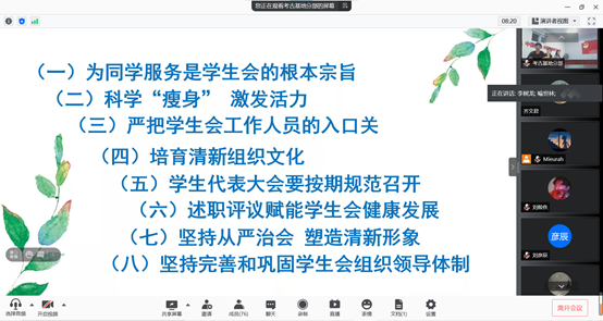 成功举办了第四届团学组织线上纳新宣讲会。本次线上宣讲会由本科生辅导员马嘉男老师指导,学生会主席团成员张馨予同学担任主持人,肉视频