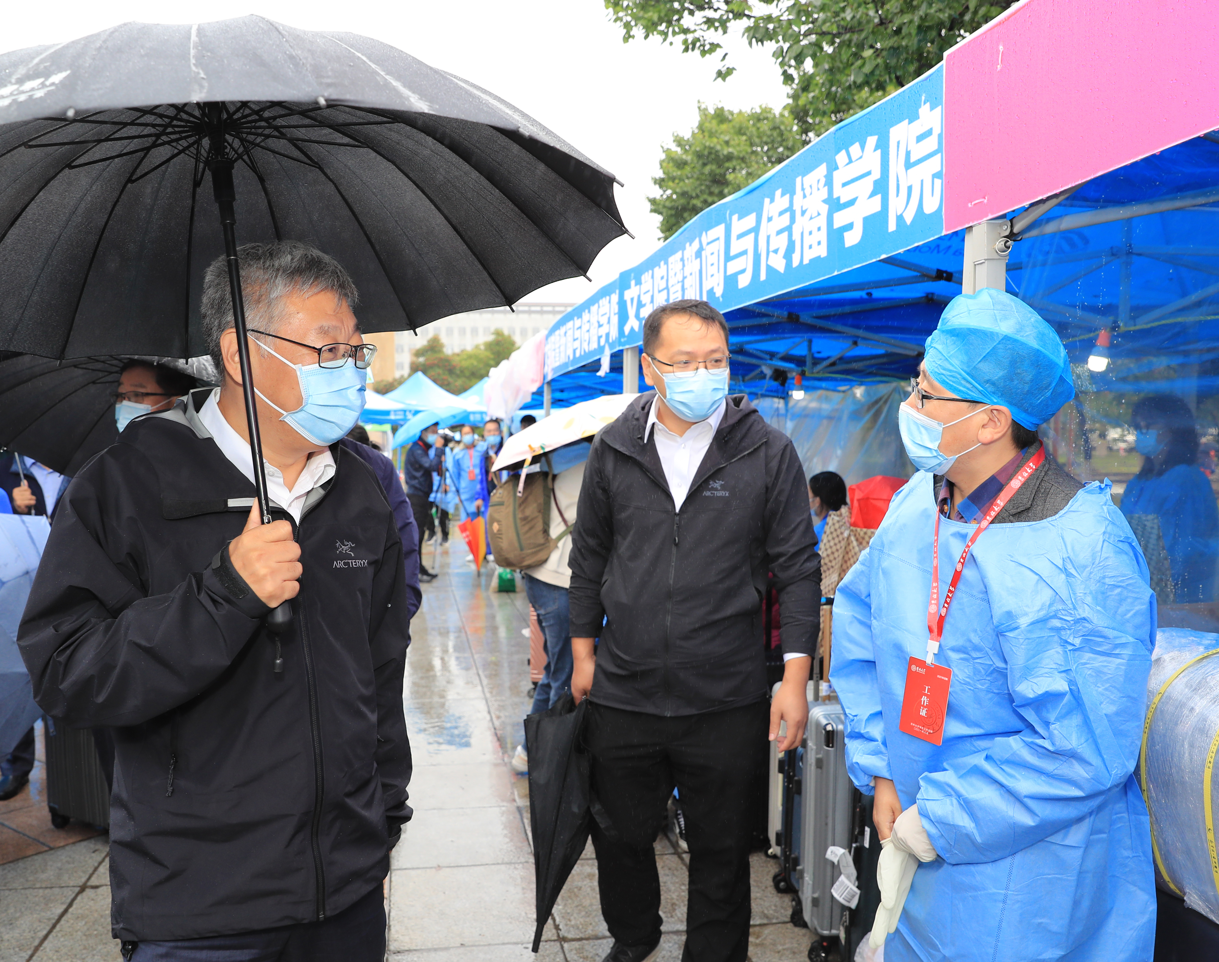 当日下午,学校领导一行莅临迎新现场视察并指导迎新工作。其间,领导们与肉视频