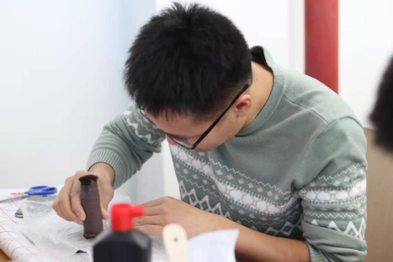 文物爱好与保护者协会在中心校区经信教学楼E103举办了一场拓片制作体验活动,来自全校各专业的五十余名同学分为两场参与。