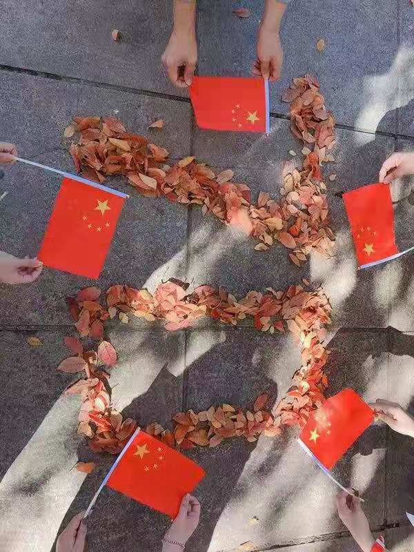 全体本科学生于国庆节前夕举办了“我和国旗合张影”主题活动。