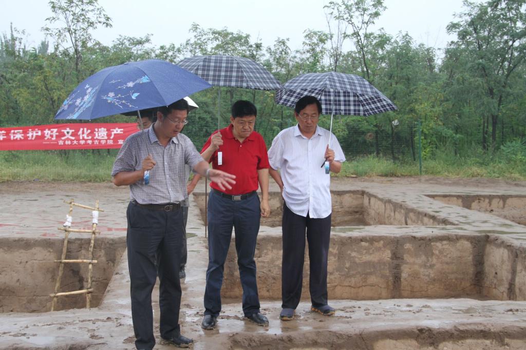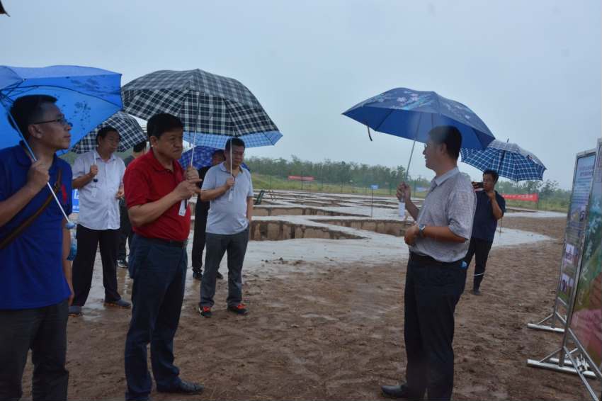 会后,领导、老师们冒雨参观工地现场,师村考古队领队段天璟教授讲解了遗址发掘情况。学院领导们还参观了基地文物库房,走访了学生宿舍。