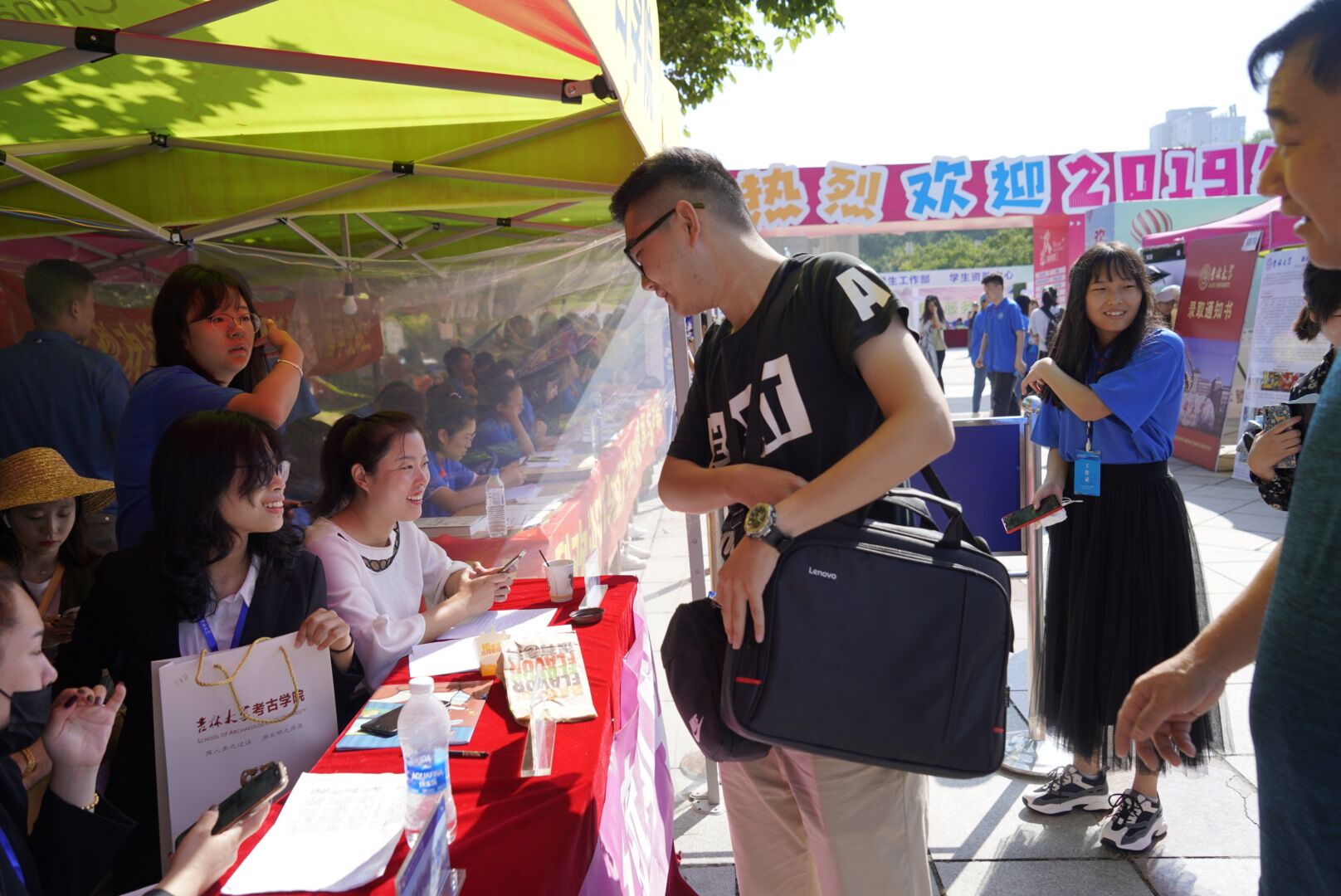 党委书记李宏伟、学院党委副书记兼副院长侯建峰、学生工作办公室主任杨晨共同至五月花广场参与当天的迎新工作。