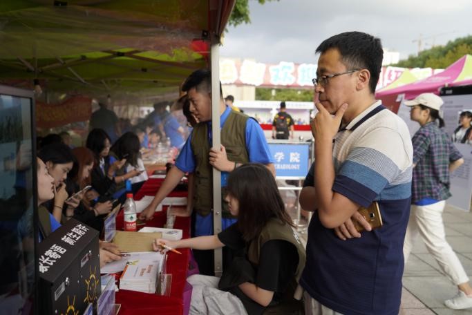 于中心校区五月花广场组织并完成2019级学生迎新场地布置任务,保证迎新工作的顺利完成,欢迎来自全国各地的莘莘学子。学生工作办公室主任杨晨带领肉视频