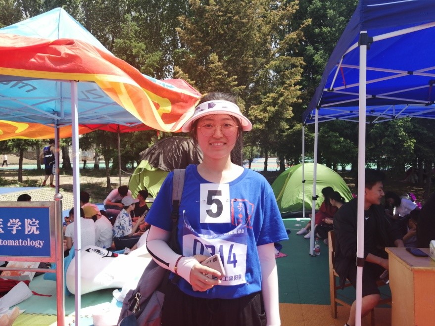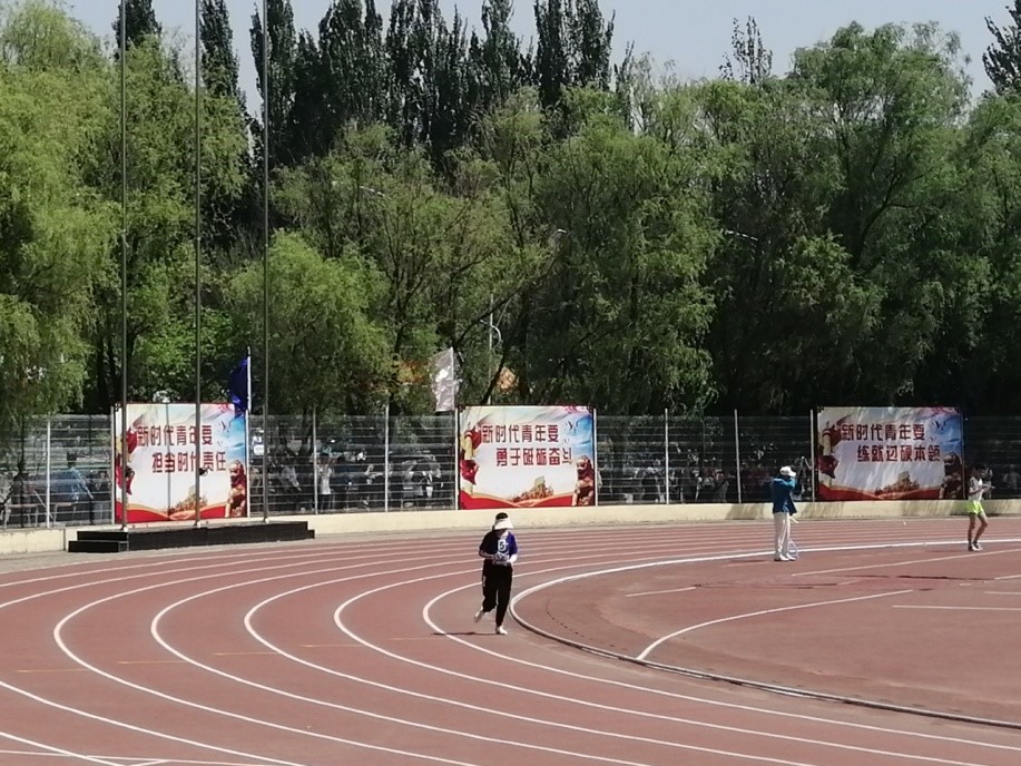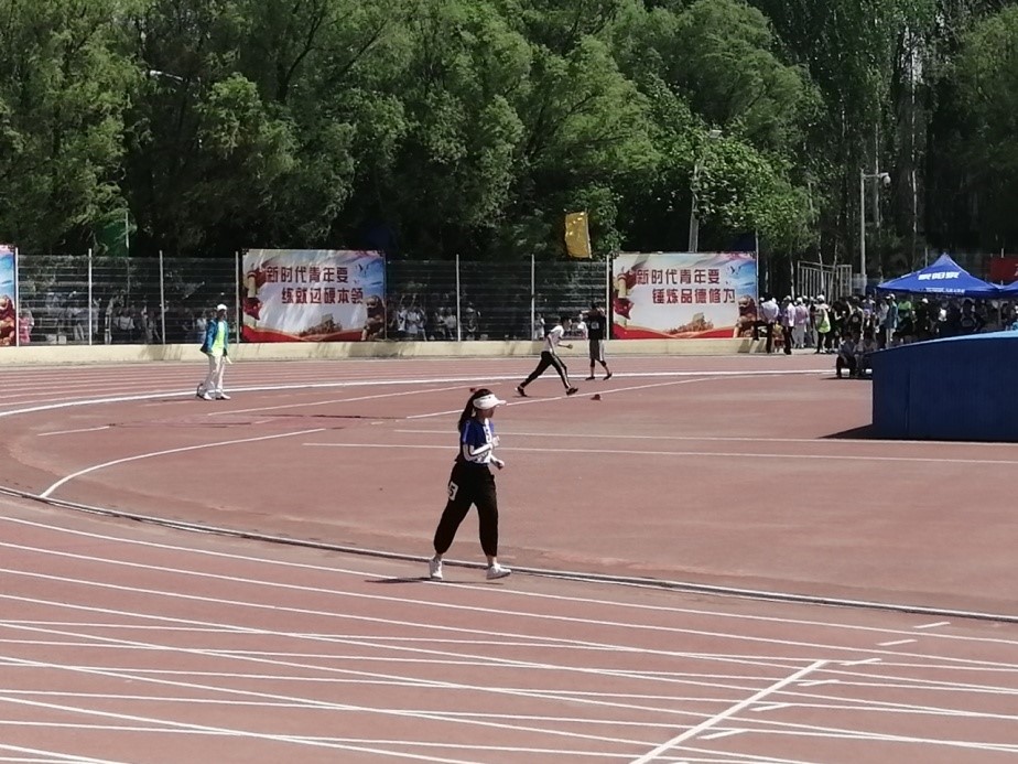 的观众队伍时,听见为其加油的声音,向观众队伍飞吻致意。最终李婉冲同学在全院师生的期待与鼓励下抵达了终点,圆满的完成了比赛任务, 取得了优异的成绩。