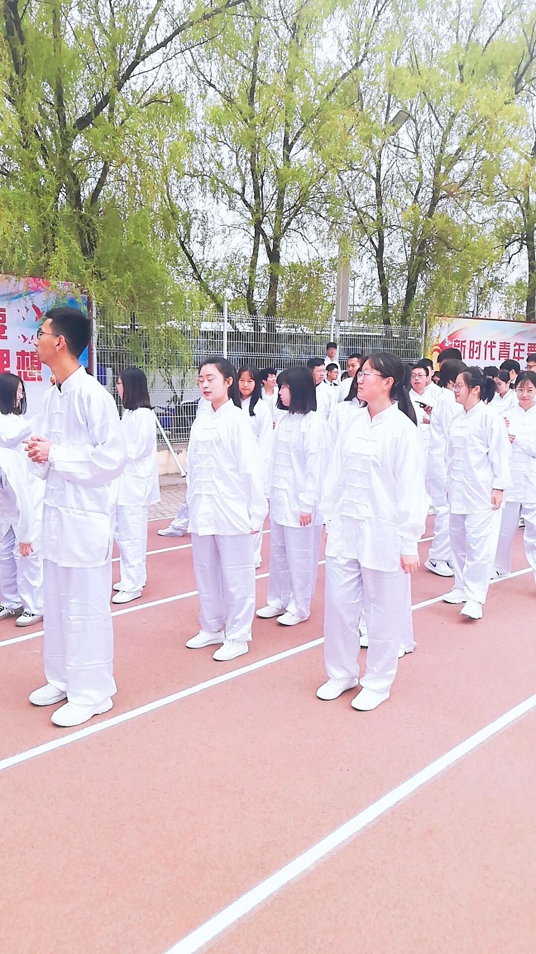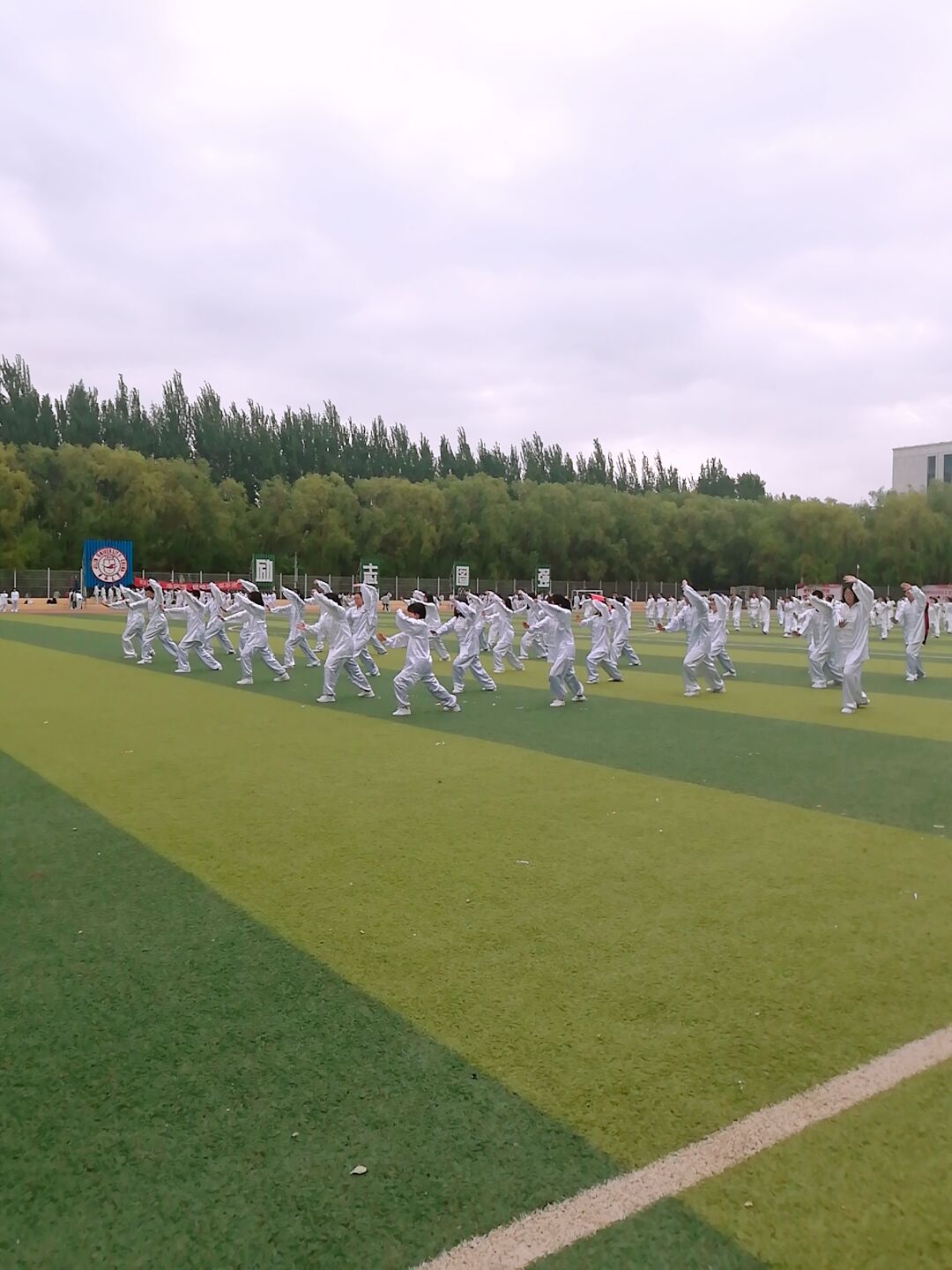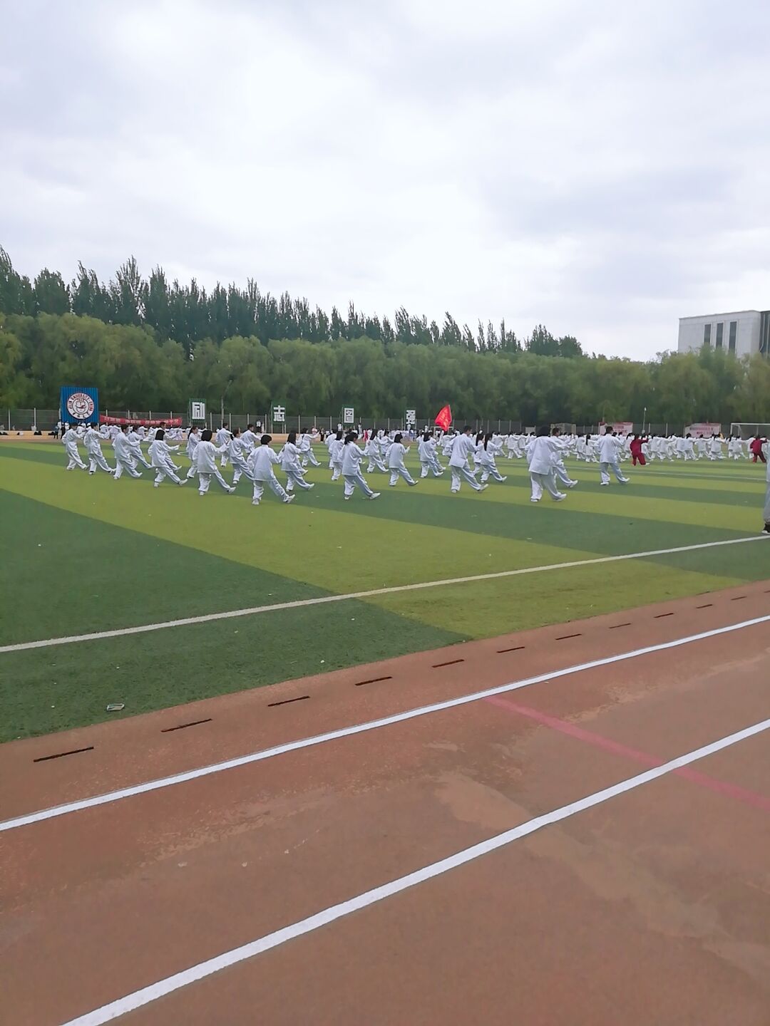 选手们身着白色太极服,整齐划一地列阵入场,向看台上的裁判与观众行抱拳礼,高喊出“古史长往,溯流四方。长浪有尽,少年无双”的口号。随后,音乐响起,运动员们铭记平日训练时教练的指导和自己的心得体会,依循节奏、彼此配合着打出一招一式,圆满完成了比赛。所有参赛组结束比赛后,集中在主席台下,聆听了裁判员老师对本次比赛的评点与总结。最后,大家不顾参赛的辛苦,进行了集体合练,为将于不久后召开的运动会上的表演作准备。