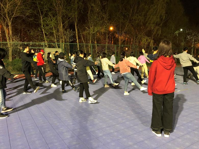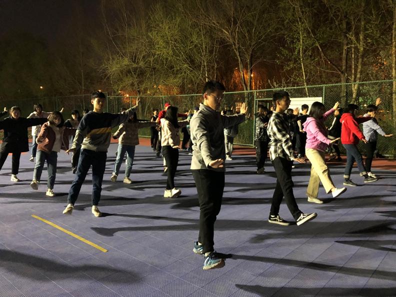 的同学们于当晚18:00在湖畔餐厅以北的篮球场东侧开展了为时2小时的太极训练。2018级同学作为运动员,2017、2016级同学作为教练员,共同参与、完成了本次训练。