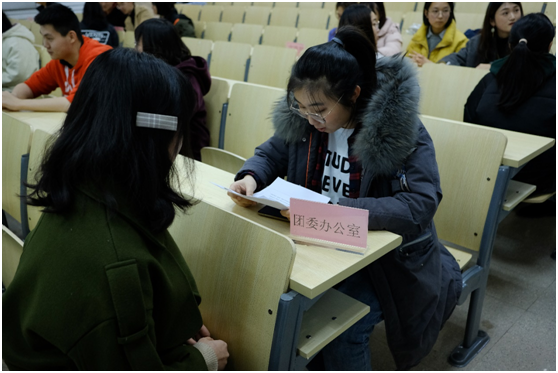 首先,学生会主席吴天聪向前来参加面试的同学表示热烈欢迎,并简单介绍了团委和学生会各部门的职责及主要工作内容。接着,各部门正式开始面试。参加面试的部门主要有团委办公室、宣传部和学生会学术部、文体部、心理部、生管部、实践部、组织部。面试过程中,同学们先做简单的自我介绍,之后,各部部长针对面试同学的相关工作经历和未来工作设想进行提问,并如实作好记录。纳新现场气氛活跃。然后,团委副书记刘颖杰发言,表达了自己对这次参加面试的同学的殷切期望,并强调责任感和使命感对于学习、生活和工作的重要性。最后,学生会主席吴天聪对本次纳新活动进行总结。