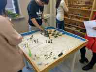 接下来,到了本次活动的重点内容——沙盘活动。通过对不同人在沙盘上摆放的风景的分析,我们的工作人员对不同人的心理进行了解读。所有参与者都对沙盘进行了界限规划,认真涂抹,表明了做事有节奏,认真严谨,有自己的世界。有原始社会到封建社会的跨越性共存,有军事基地大集合,有原始时代部落图腾的信仰,有宗教世界的碰撞,有动物世界的展现。如此种种不一而足,展示了大学生丰富多彩的心理活动和生活状态。