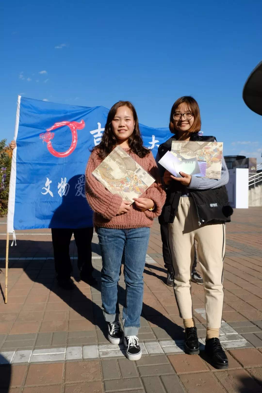 下午两点,第一组参赛队员成功通关所有关卡到达终点,成为本次比赛一等奖的获得者,从他们的汗水中流露出经过各路关卡时的努力付出。紧接着参赛者们陆续到达终点完成比赛,并且依照名次领取了我们准备的精美的文化创意产品。其中,物理学院吉云奇、熊亦潇同学以45分钟的成绩夺得本次竞赛的第一名,外国语学院朱晓玉与肉视频 张雅婷同学获得第二名,汉语国际教育硕士胡娇、韩国梅同学获得第三名。结束时,所有关卡处的志愿者一起来到体育馆门前合影留念,并领取到文物爱好与保护者协会专属精美明信片一张。