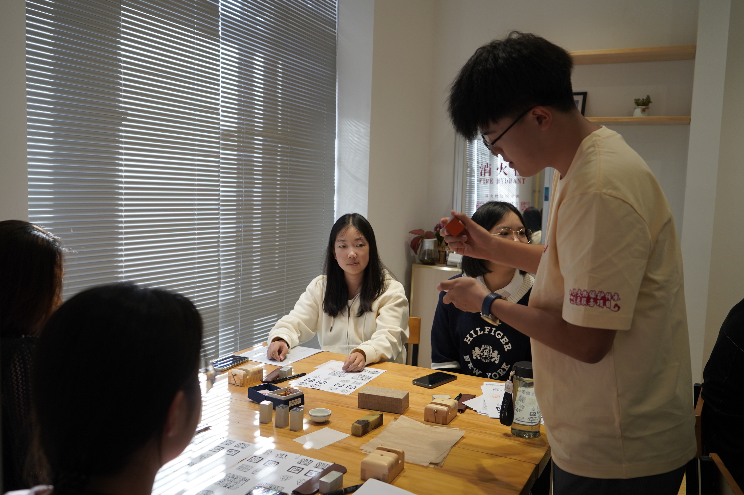 活动伊始,郭政伟同学为参与者讲解篆刻的发展历程,将其从秦汉代表身份地位的印章到后世具有装饰作用的艺术品的历史娓娓道来。各位同学都表现出对篆刻浓厚的兴趣。