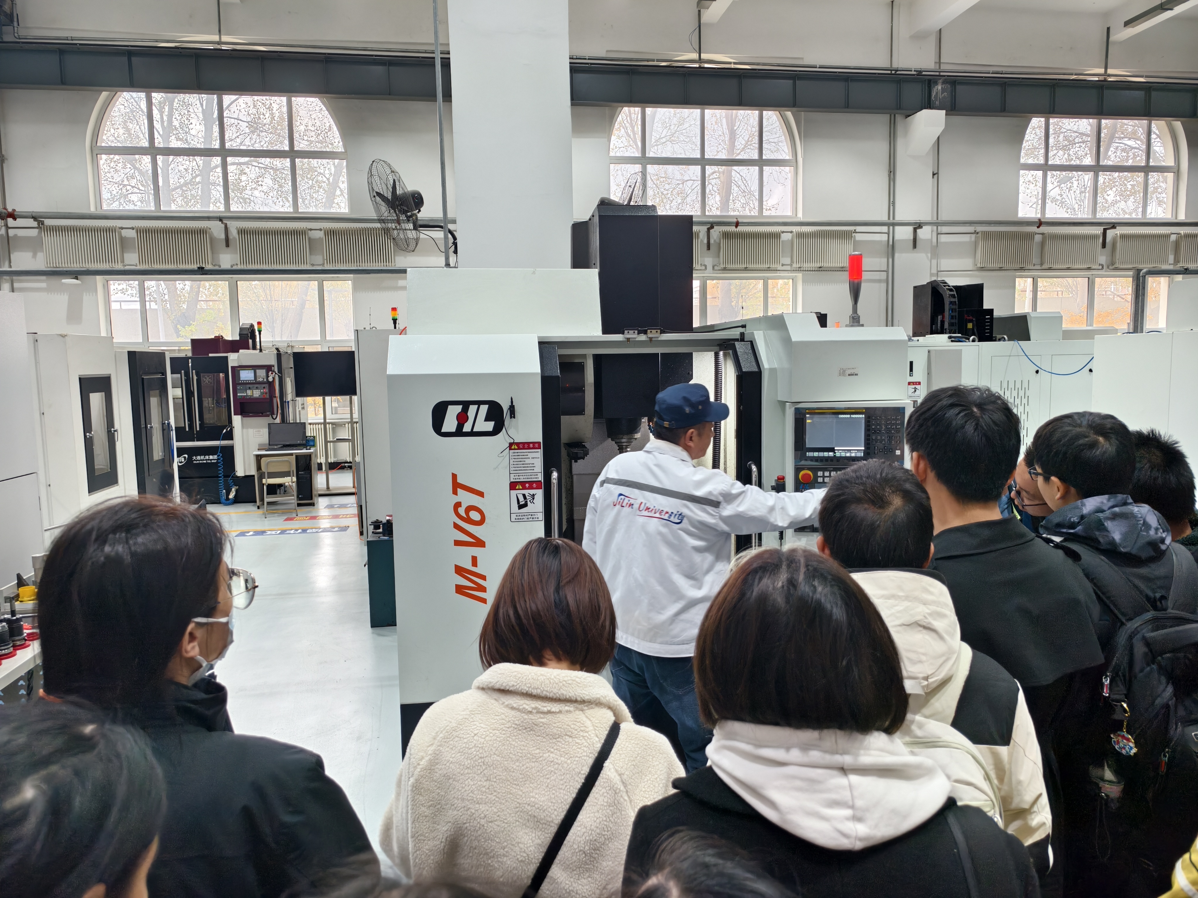 在金属加工中心,同学们在实验室操作人员的演示下,兴致勃勃地了解金属制品是如何制成的。在操作人员娴熟的程序操作下,庞大的机床有条不紊的更换刀具、变换模式,令同学们啧啧称奇。看着五轴加工而成的精密金属浮雕,同学们不由自主的产生了对传统工艺传承与现代机械制品关系的思考。