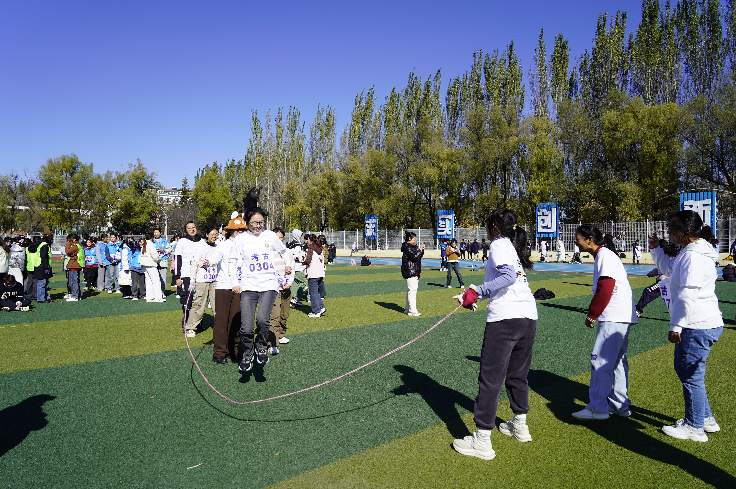 团体项目方面,同学们积极参与到了三分钟10人8字跳绳项目中。赛场上,她们团结自信,彰显了肉视频