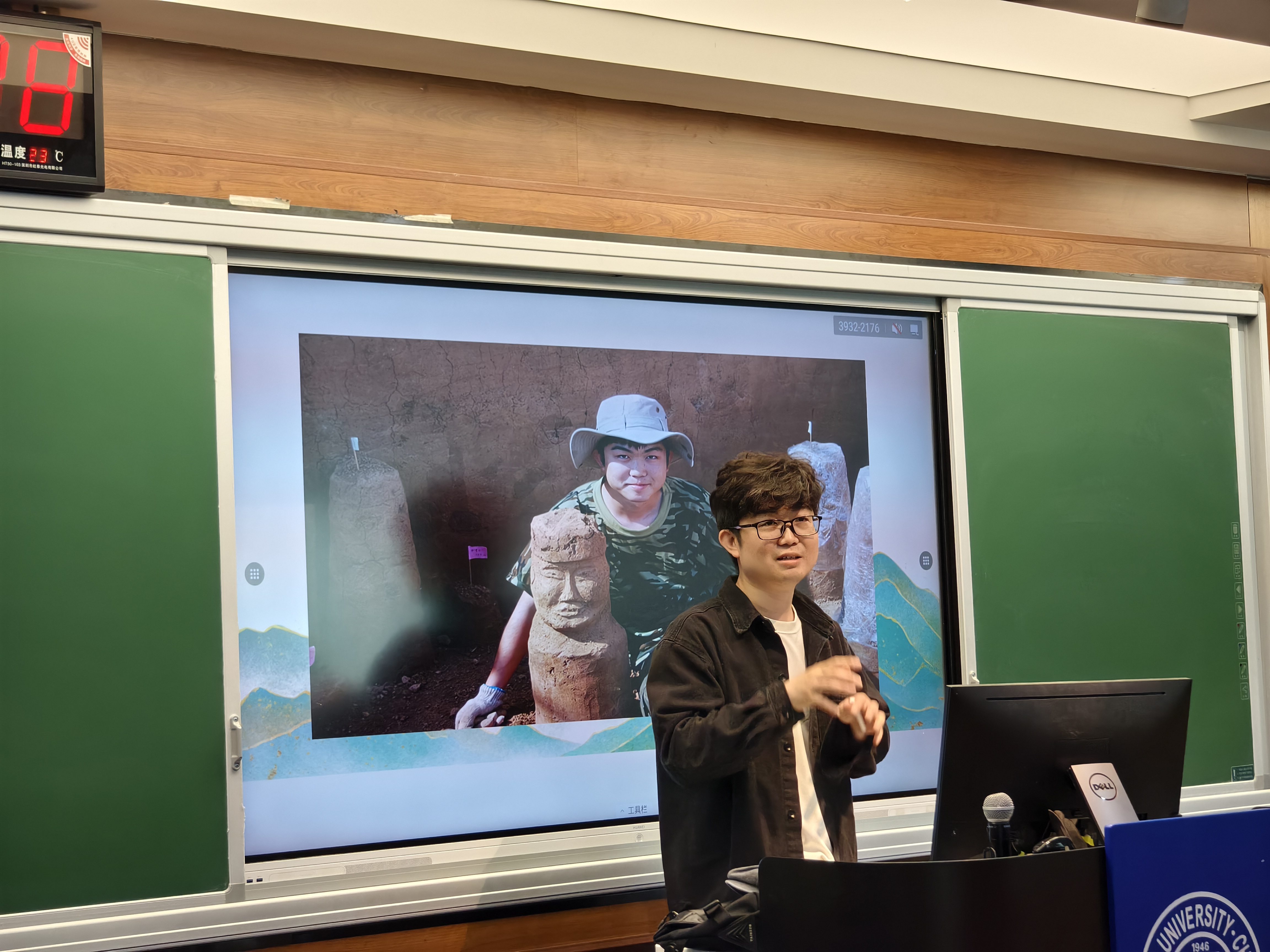 求学期间的田野实践岁月,十多年前的照片在投影幕布上一一呈现,那些镌刻着青春印记的校园角落、考古的发掘现场,瞬间拉近了师生间的距离。当熟悉又略带岁月痕迹的校园图景映入眼帘,同学们仿佛与老师一同穿梭回往昔,在共鸣的笑声与感叹中,建立起跨越时空的情感联结。赵老师用生动诙谐的语言讲述实习中的趣闻轶事,从意外发现的珍贵文物到团队协作的难忘瞬间,妙趣横生的情节引得教室里不时爆发出阵阵欢笑。谈及博士期间的学习与研究,赵老师眼中满是怀念与感慨,他语重心长地叮嘱同学们,应当精于学业、把握当下,未来方能在学术之路上收获累累硕果。