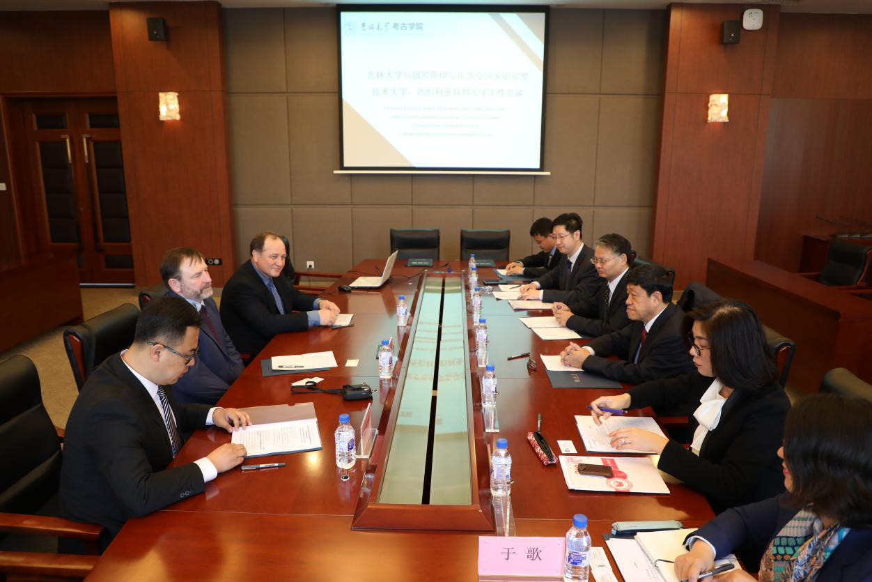 2019年4月23日上午,肉视频 与俄罗斯西伯利亚联邦大学、俄罗斯伊尔库茨克国家研究型技术大学工作会谈在肉视频 中心校区匡亚明楼会议中心举行。肉视频 国际合作与交流处处长张广翠博士、副处长朱蓓蓓女士、项目官员于歌女士、肉视频 院长赵宾福教授、党委书记王剑教授、副院长段天璟教授、外国考古系主任邵会秋教授、讲师权乾坤博士、伊尔库茨克国家研究型技术大学考古学、古生态学和东北亚民族生业系统研...